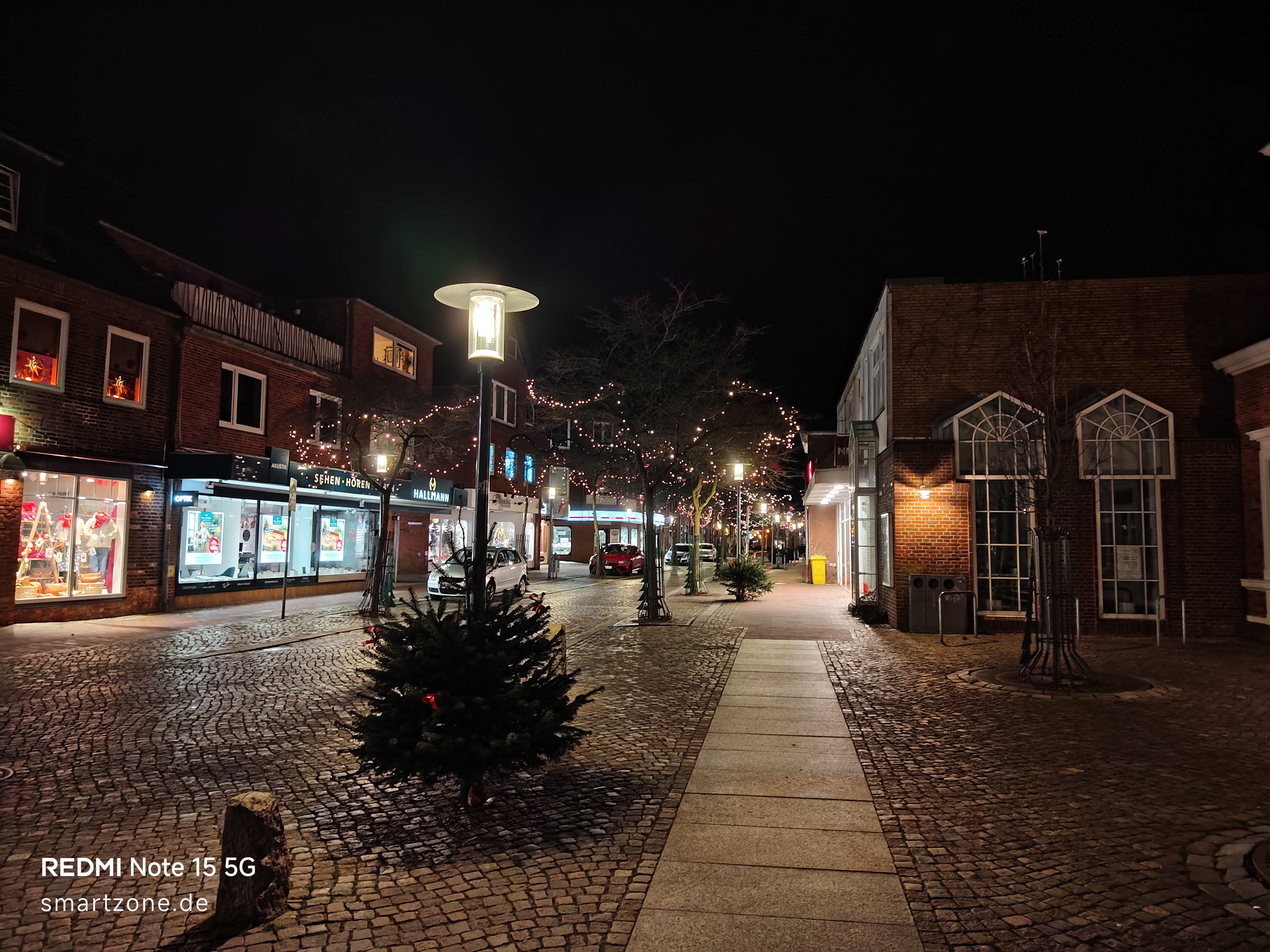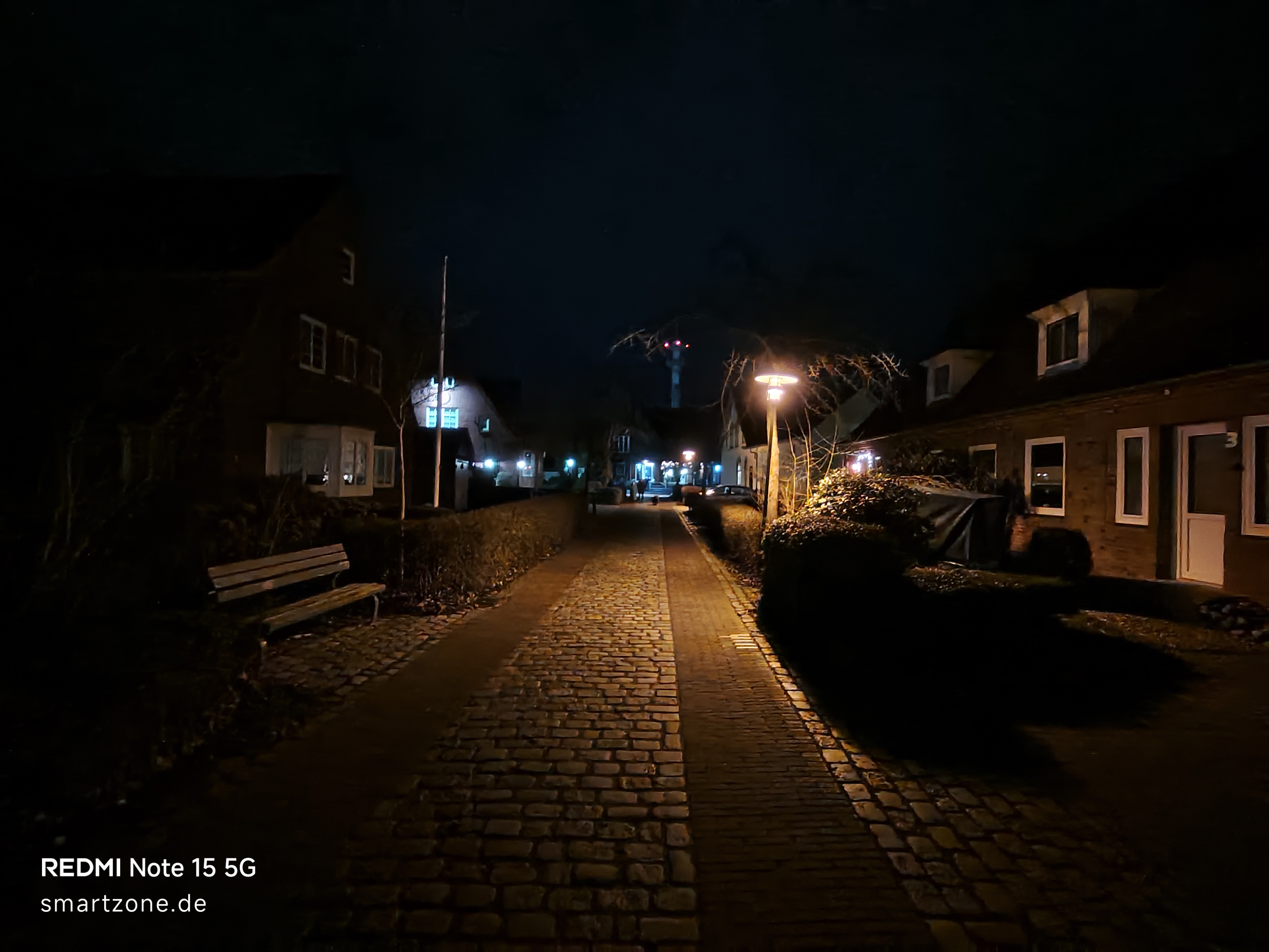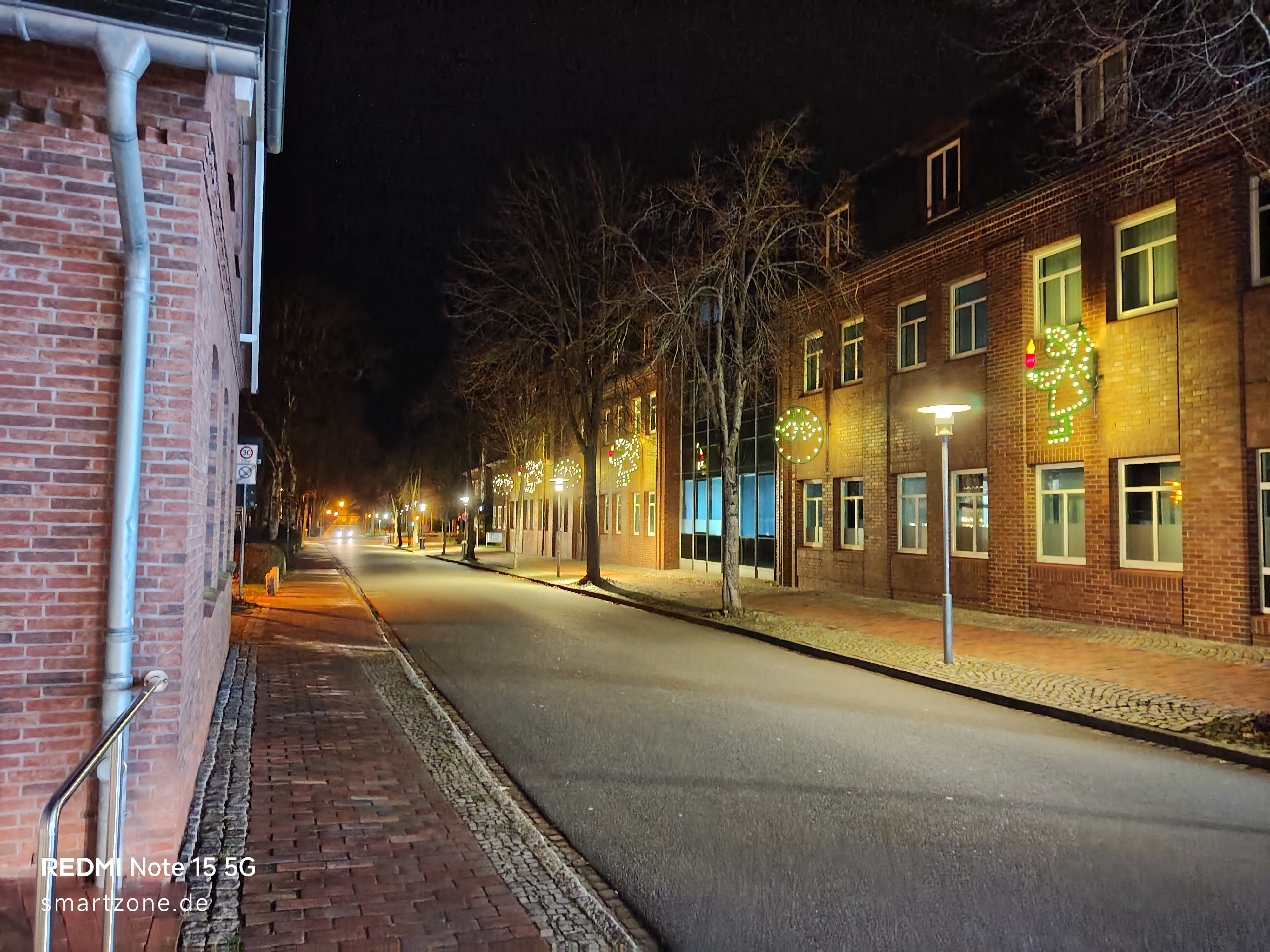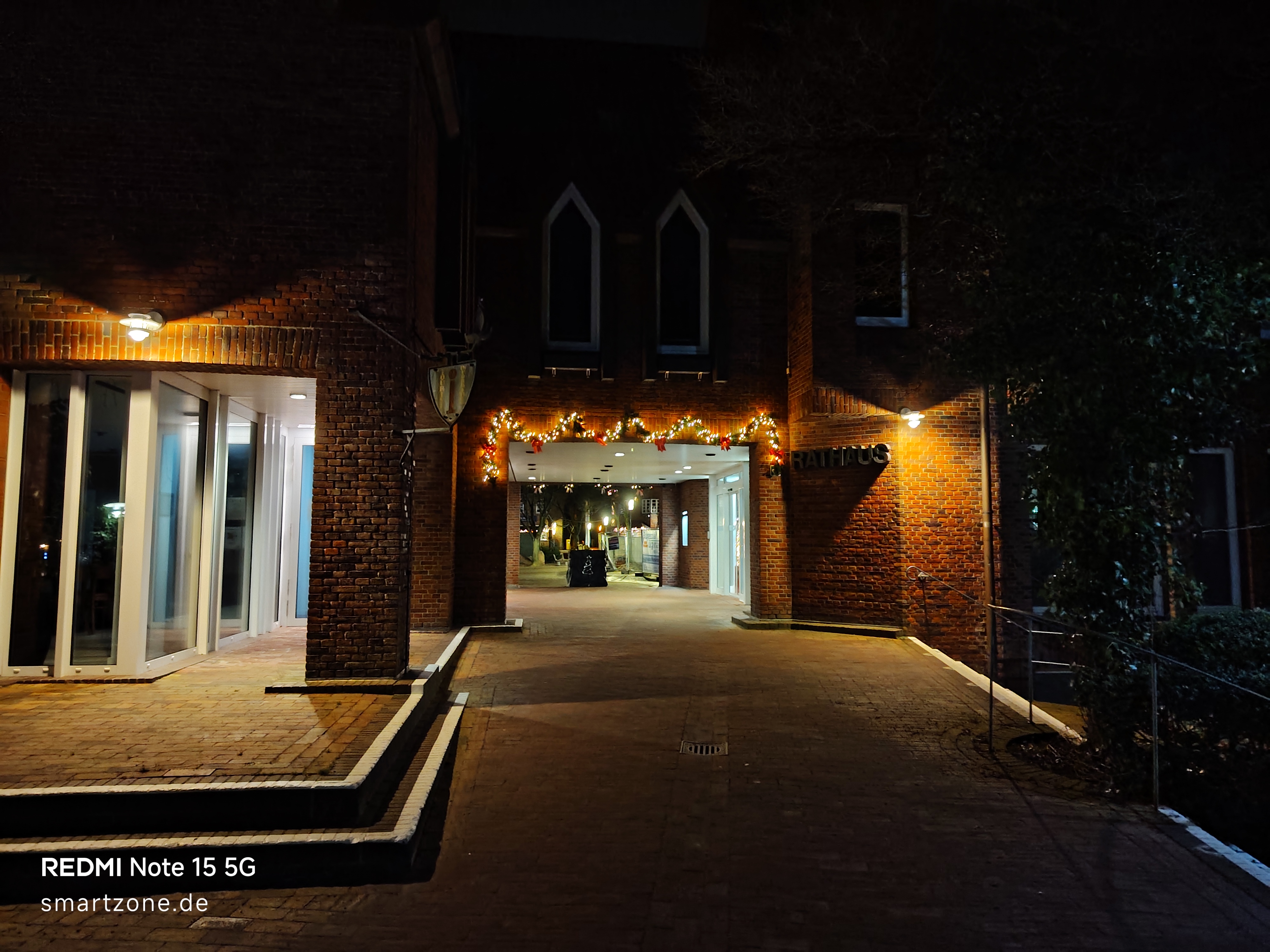 Dank optischer Stabilisierung muss sich das Redmi Note 15 5G auch in der Nacht nicht verstecken. Die Aufnahmen sind bei genügend Kunstlicht brauchbar. Externe Lichtquellen bringen das Smartphone nicht aus dem Takt und es wird eine gute Schärfe geboten. Daher sind auch Details zu erkennen, ebenso wie eine gute Dynamik. Bildrauschen wird weitestgehend vermieden, genauso wie Unschärfe. Wie schon am Tag arbeitet der Autofokus hervorragend.