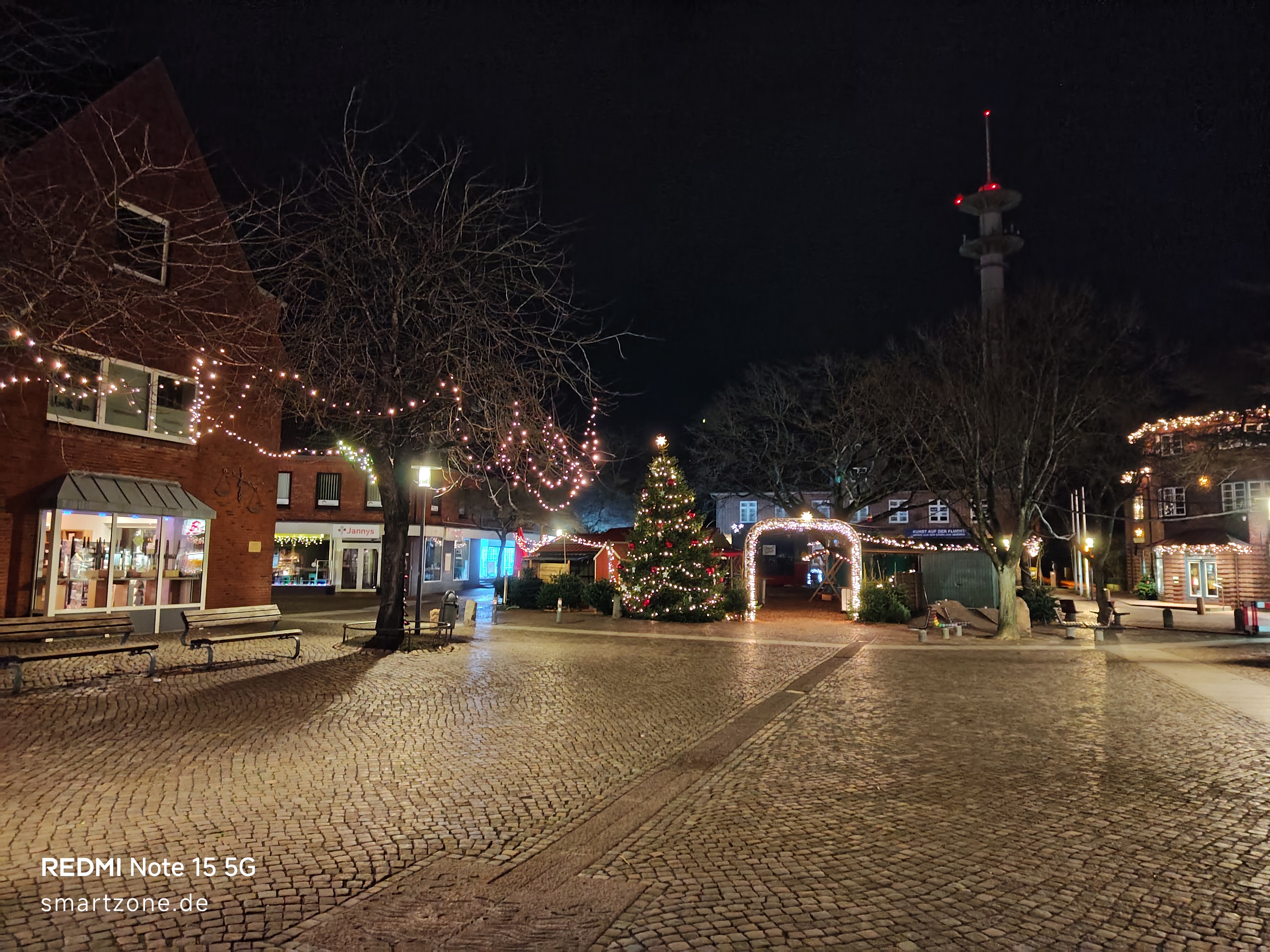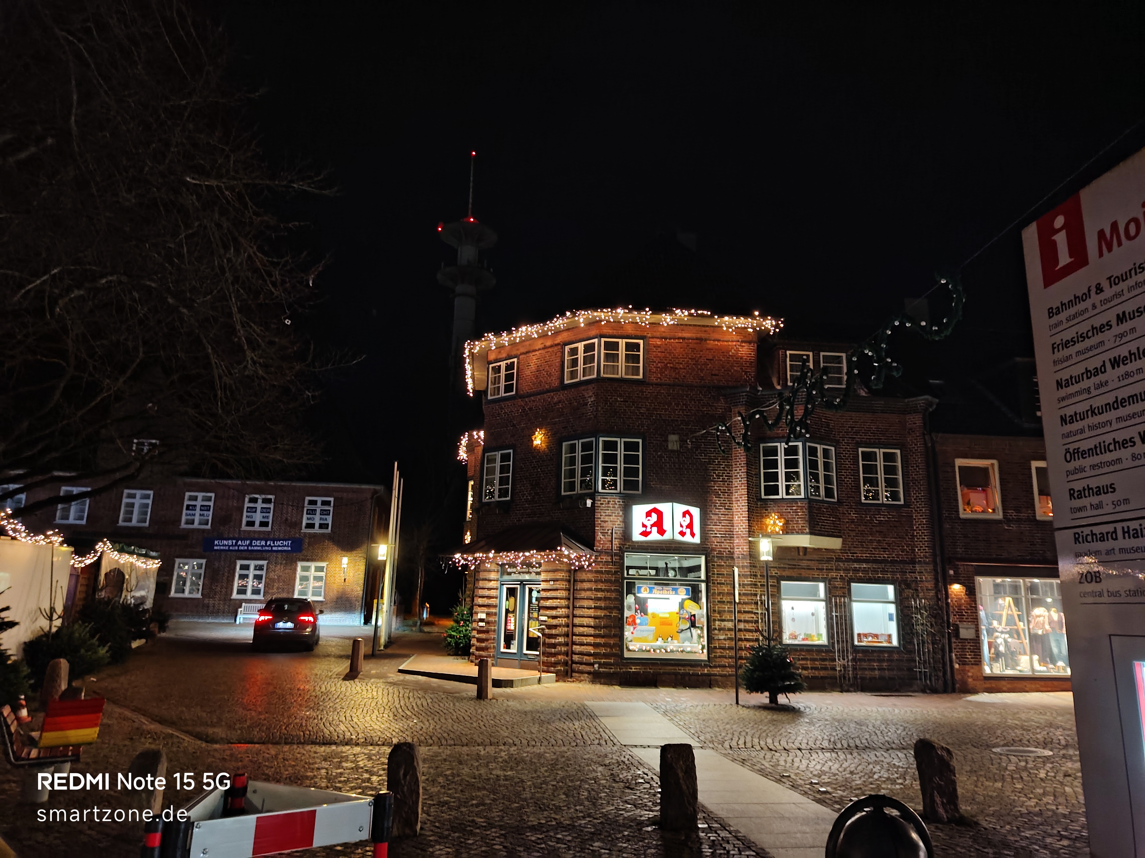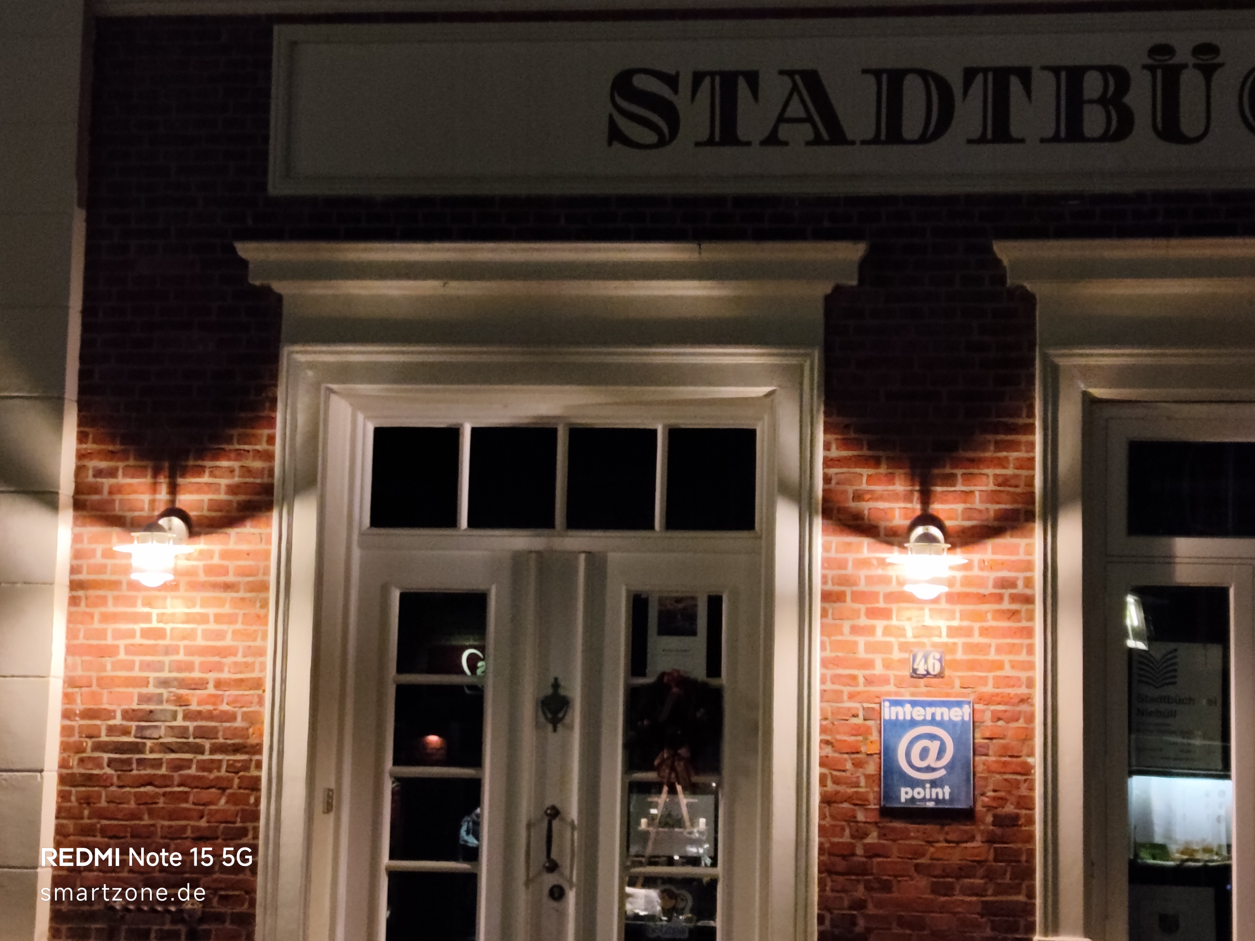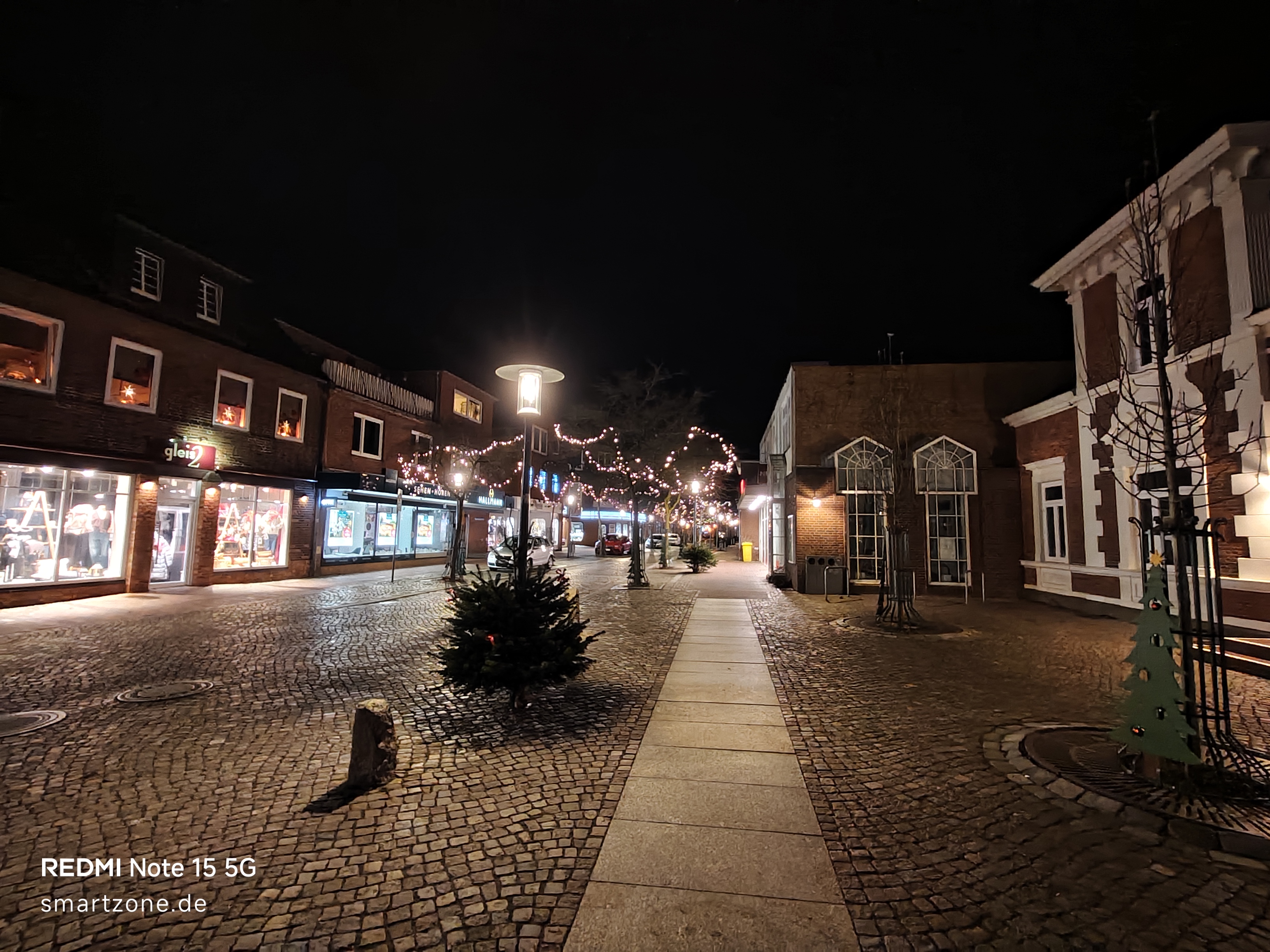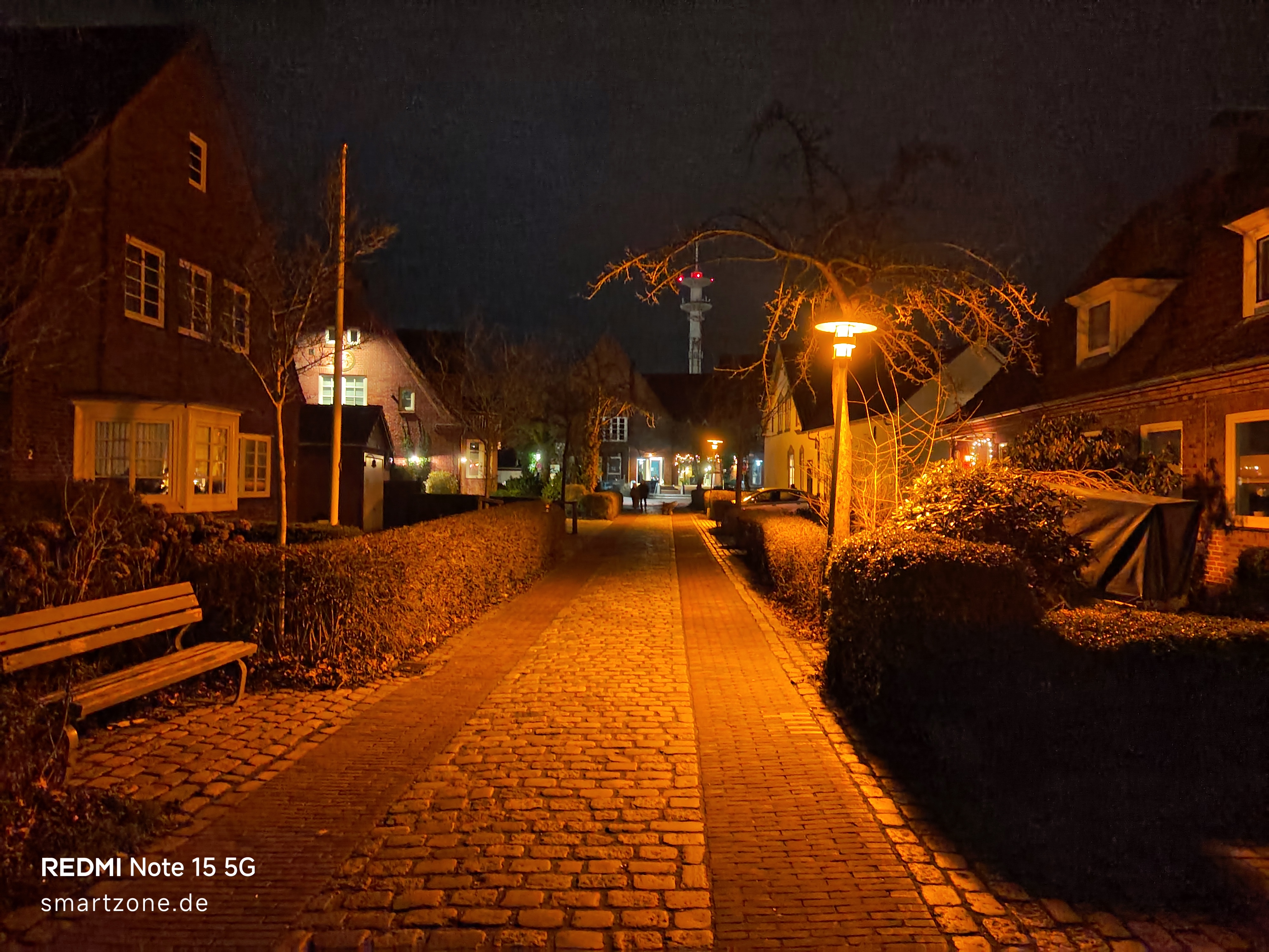 Dank optischer Stabilisierung muss sich das Redmi Note 15 5G auch in der Nacht nicht verstecken. Die Aufnahmen sind bei genügend Kunstlicht brauchbar. Externe Lichtquellen bringen das Smartphone nicht aus dem Takt und es wird eine gute Schärfe geboten. Daher sind auch Details zu erkennen, ebenso wie eine gute Dynamik. Bildrauschen wird weitestgehend vermieden, genauso wie Unschärfe. Wie schon am Tag arbeitet der Autofokus hervorragend.