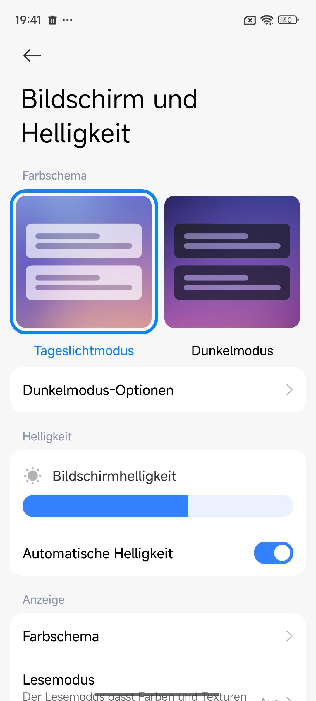 Der Bildschirm ist umfangreich anpassbar. Neben dem Farbschema lassen sich noch die Schriftart und die Größe anpassen, wie ihr es von HyperOS gewohnt seid. Daneben lässt sich noch ein Dunkel- oder Lesemodus aktivieren. Im Lesemodus wird der Blaulichtanteil in der Anzeige reduziert. HDR wird nicht unterstützt, dafür ist aber Widevine Level 1 mit an Bord. Somit kommen alle Streamingfans auf ihre Kosten.