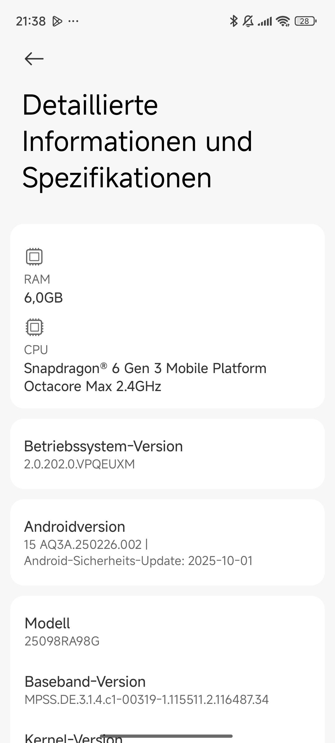 Natürlich nutzt das Xiaomi Redmi Note 15 5G HyperOS 2 als Betriebssystem. Dabei vertraut der Hersteller zum Marktstart auf Android 15 als Unterbau. Das Betriebssystem ist bekannt und umfangreich zu konfigurieren. Anwender, die von anderen Systemen wie OneUI kommen, benötigen ein wenig Zeit für die Umstellung. Das System ist komplett in Deutsch verfügbar und Abstürze waren im Test keine zu beklagen.