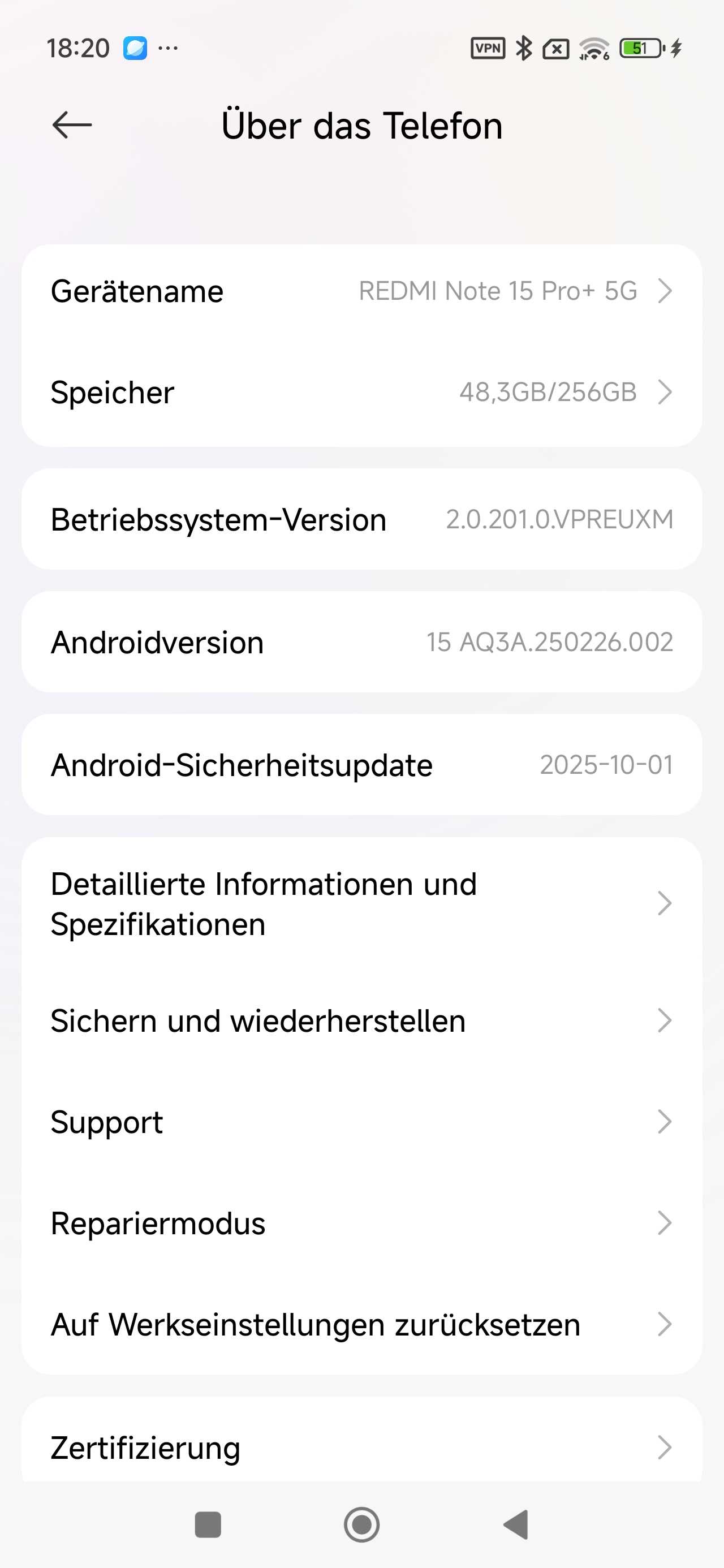 Als Betriebssystem kommt das etwas ältere Android 15 zum Einsatz, über das Xiaomi seine hauseigene Oberfläche HyperOS 2 stülpt. Ein Update auf HyperOS 3 (auf Basis von Android 16) sollte bald erscheinen. Zu erwarten sind ansonsten 4 Jahre Systemupdates sowie 6 Jahre Sicherheitsupdates. Damit wird das Gerät für seine realistische Nutzungszeit komplett mit Updates versorgt.