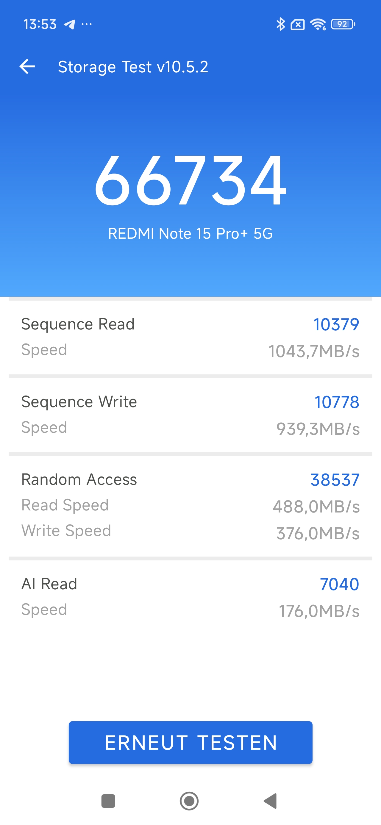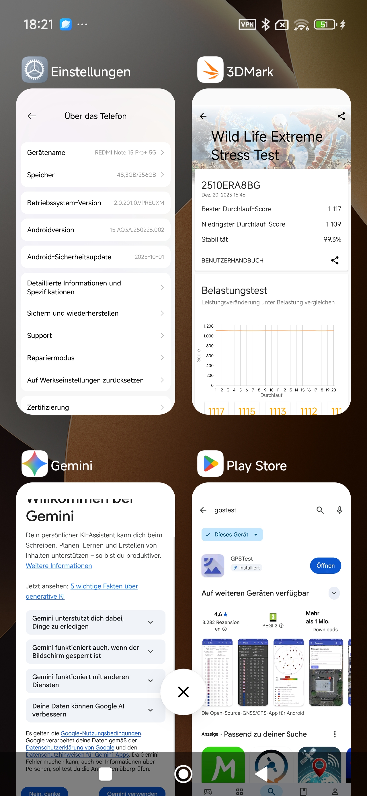 Wie schlägt sich das Ganze nun im Alltag? Die System-Performance ist solide und ermöglicht eine weitestgehend flüssige Bedienung. Ihr merkt an der ein oder anderen Stelle jedoch, dass wir uns hier in der Mittelklasse bewegen – vereinzelt müsst ihr mit kleinen Ladezeiten rechnen. Das ist alles in Ordnung, und viele andere Hersteller bieten in diesem Preissegment auch nicht mehr. Wir müssen aber ganz klar sagen: Gegen die hauseigene Konkurrenz sieht das Redmi Note 15 Pro+ 5G kein Land! Ein Poco X7 Pro ist bereits deutlich günstiger zu haben und bietet mehr Power. Gegen die Poco F7 Reihe oder gar die neuen Poco F8 Smartphones wirkt das Redmi leistungstechnisch fast schon etwas blass.
