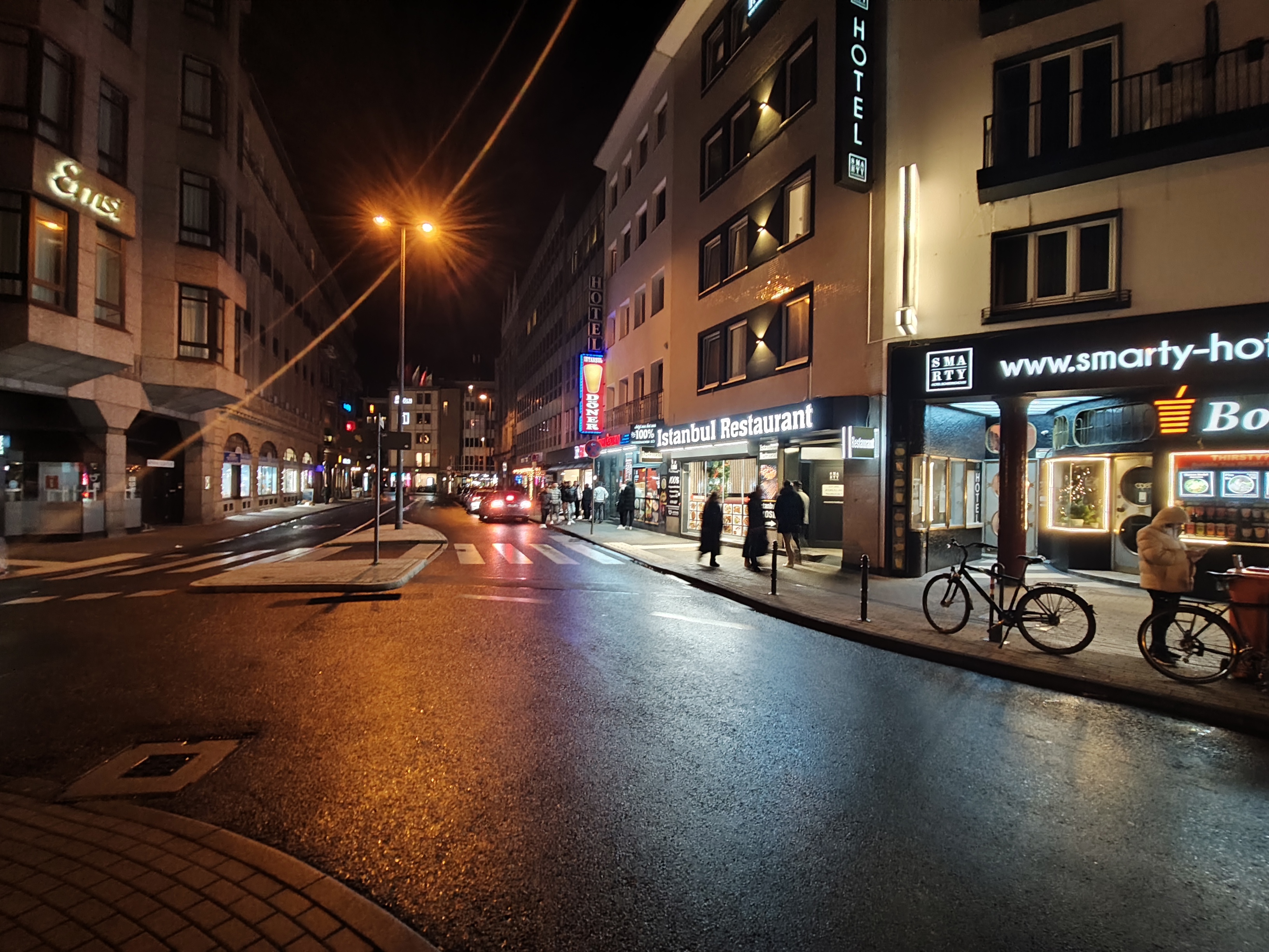 Auch bei Nacht spielt die Hauptkamera ihre Stärken aus. Die Bilder zeigen wenig Rauschen und behalten viele Details. Die Farbsättigung ist angenehm, driftet in seltenen Fällen aber minimal ins Gelbliche ab. Insgesamt sind die Ergebnisse für diese Preisklasse exzellent.