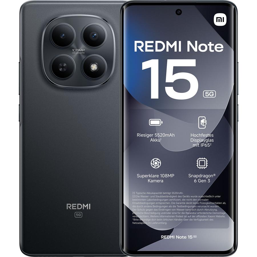 Das Redmi Note 15 Pro 5G setzt auf einen MediaTek Dimensity 7400, der im 4nm-Verfahren gefertigt wird. Außerdem hat es einen riesigen 6580mAh Akku und lädt 45W schnell. Zudem bietet das 5G-Pro-Modell eine höhere Auflösung (2712 x 1220 Pixel) des AMOLED-Panels, Gorilla Glass Victus 2 zum Schutz, eine IP68-Zertifizierung und den 200MP-Kamerasensor mit OIS.