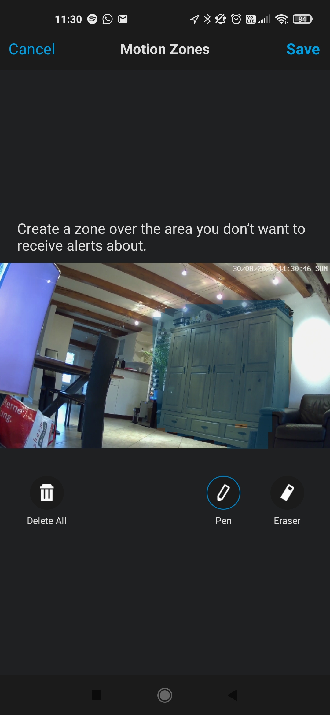 Die App bietet eine Benachrichtigung von erkannten Bewegungen per Smartphone-App oder auch per Email. Es ist auch möglich, eine Zone festzulegen, in der die Bewegung erkannt werden soll. Die Sensitivität der Erkennung ist von 1-100 einstellbar. Die erkannten Bewegungen werden in Filmsequenzen festgehalten und in einer mehr oder weniger übersichtlichen Historie nach Datum abgespeichert.