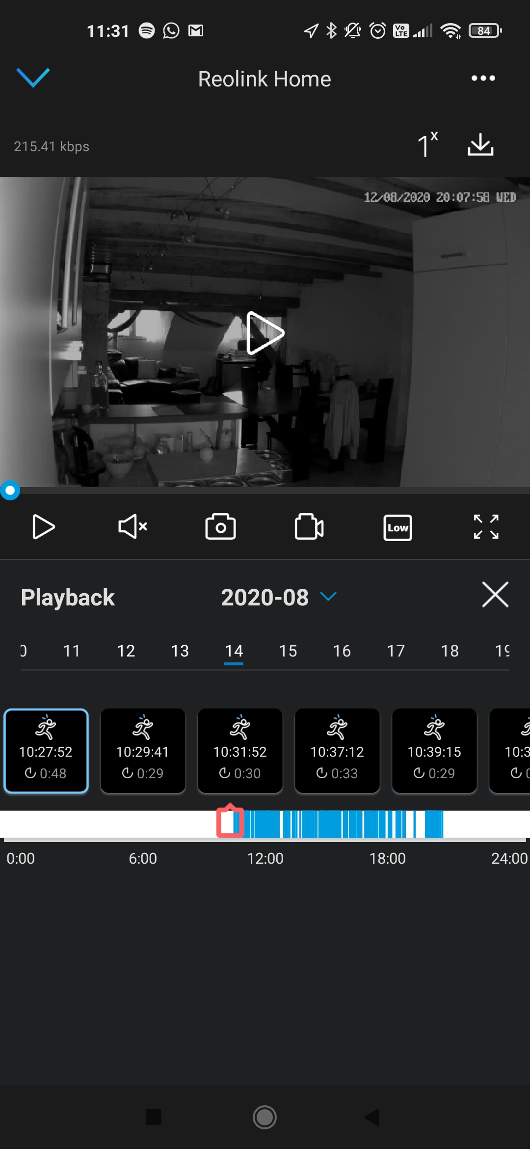 Der Stream der Reolink RLC-410W funktioniert in drei Qualitätsstufen. Leider ist die Kameraqualität generell nicht sehr gut, hier hätte ich bei dieser Linsengröße einiges mehr erwartet. Auch Infrarot schaltet sich bereits sehr früh ein, da die Kamera einfach nicht allzu lichtstark ist. Im Vergleich zu anderen Kamera Modellen wie die Eufy 2K Kameras, kann die Reolink RLC-410W nicht mithalten. Selbst bei besten Lichtverhältnissen sorgt das eher körnige Bild, mit der schwachen Auflösung, nicht für Glücksgefühle. Der Hersteller wirbt allerdings mit einer Auflösung von 2560×1440 Pixeln, was als super HD mit 4MP beschrieben wird. In den Videodetails wird die Auflösung entsprechend angezeigt, daher reicht wohl der 4MP-Sensor einfach nicht aus, um ein sauberes Bild zu erstellen. Der Livestream lässt einen Zoom zu, der in einem separaten Bild angezeigt wird. Diese Funktion finde ich sehr gut, so hat man den ganzen Bereich im Überblick und zusätzlich noch eine gewünschte Stelle im Zoom.