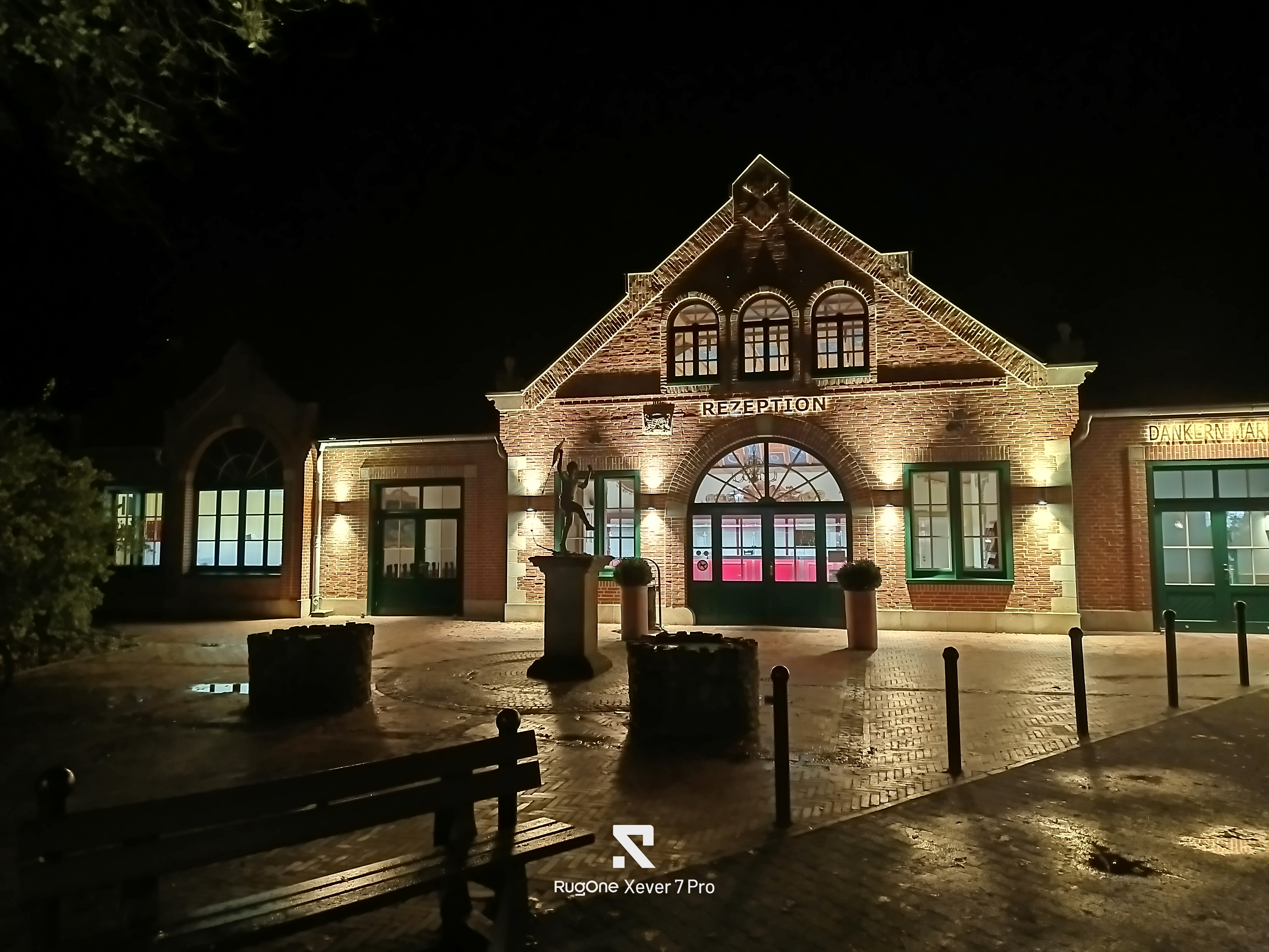 Auch für Nachtaufnahmen ist die Hauptkamera geeignet, solange genügend Licht zur Verfügung steht. Dann werden die Bilder astrein und abermals profitiert das Rugone Xever 7 Pro vom starken Sensor. Die Dynamik der Aufnahmen ist gut, nur die kräftigen Farben fallen ins Auge. Wackler in der Aufnahme sind nicht zu beobachten, die optische Stabilisierung arbeitet zuverlässig. Auch Bildrauschen eliminiert die Software zuverlässig. Nur für wirklich dunkle Bereiche fehlen der Software längere Belichtungszeiten, aber dafür hat das Smartphone noch die Nachtsichtkamera, denn diese funktioniert auch bei absoluter Dunkelheit.