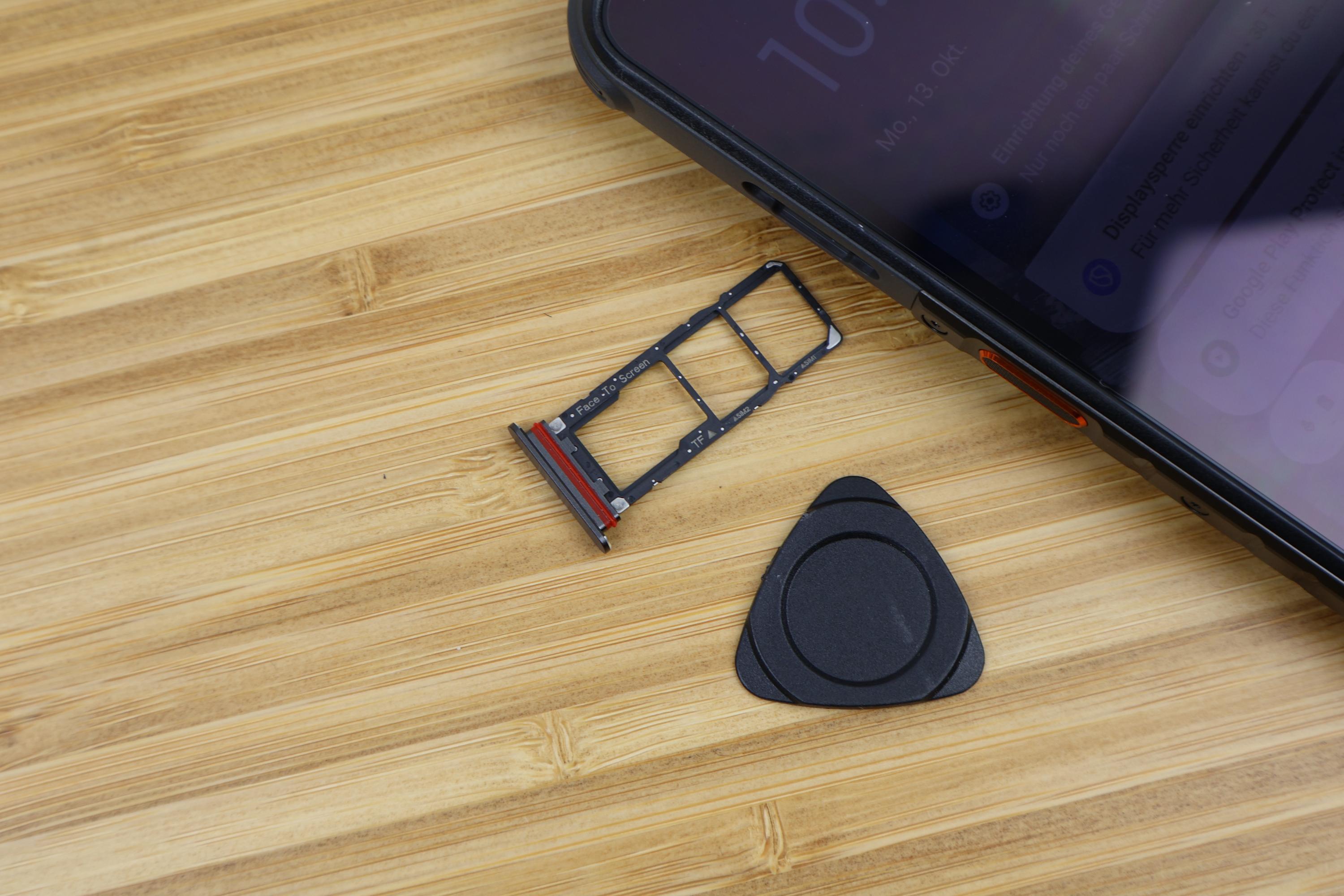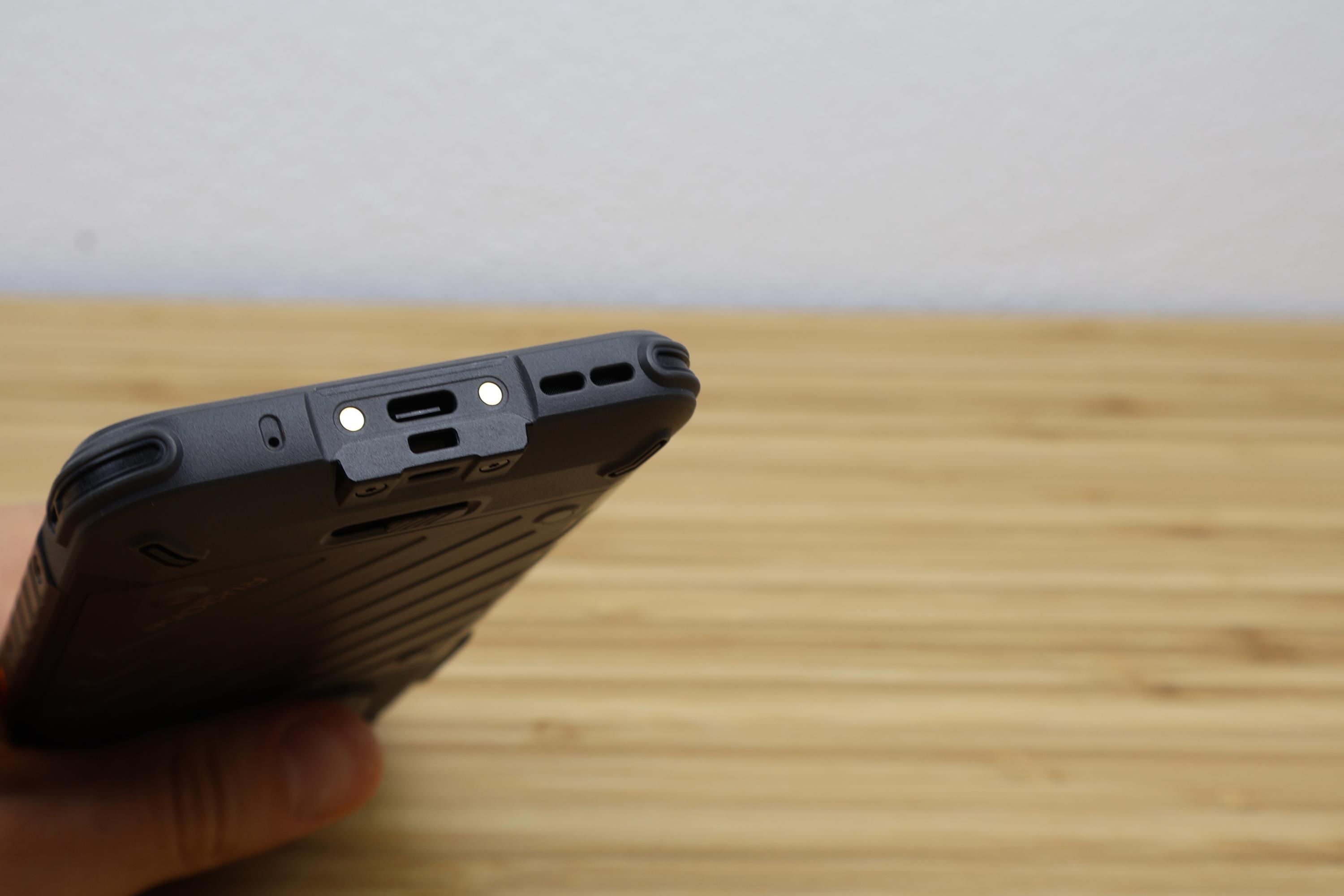 Auf der Oberseite sind zudem der 3,5mm-Klinkenanschluss, IR-Sender und das zweite Mikrofon verbaut. Stereosound unterstützt das Smartphone nicht, so muss der Monolautsprecher der Unterseite reichen, genauso wie der USB-C 2.0-Anschluss. Die Po-Go-Pins auf der Unterseite können zum Aufladen des Smartphones genutzt werden. Der Triple-Slot auf der linken Seite kann mit dem Fingernagel ohne weiteres Werkzeug entnommen werden. So können zwei SIM-Karten und eine microSD-Karte genutzt werden. Insgesamt kann das Rugone Xever 7 Pro in dieser Kategorie voll überzeugen und das Smartphone wirkt solide und durchdacht.