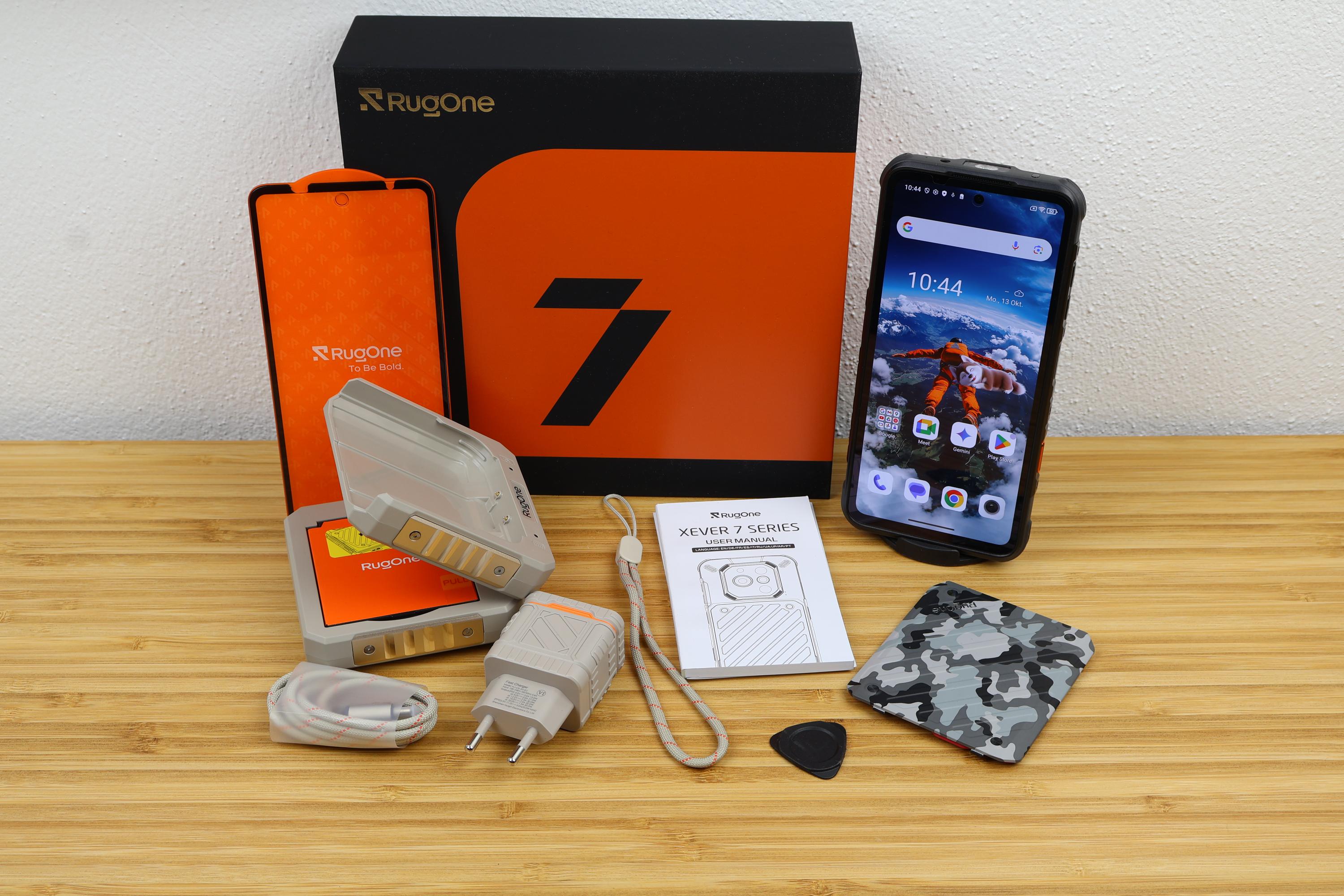 Der Lieferumfang des Rugone Xever 7 Pro ist astrein und relativiert den hohen Preis des Smartphones ein wenig. Neben dem Smartphone sind noch folgende Artikel im Karton enthalten: