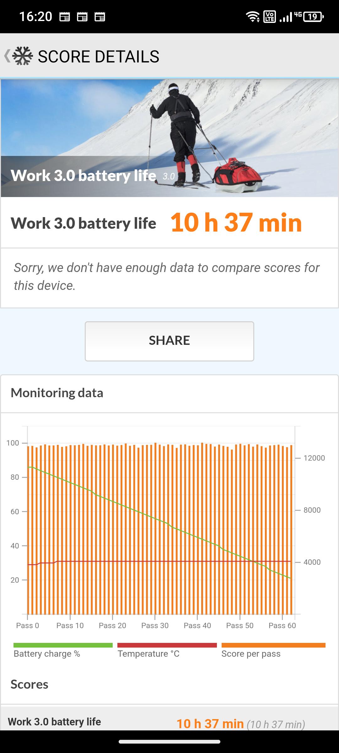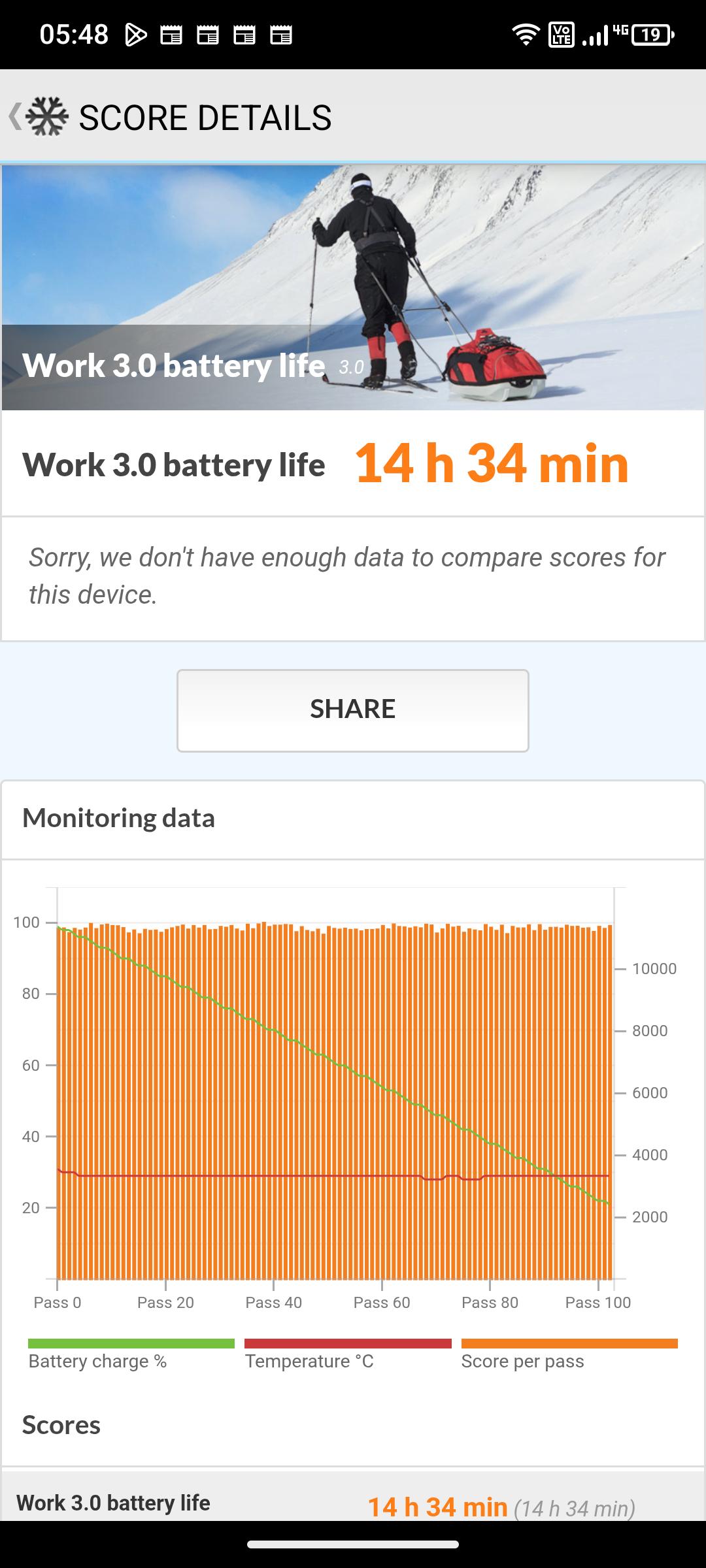 Mit 5.550mAh ist der Akku des Rugone Xever 7 Pro eher klein für ein Outdoorsmartphone, allerdings lässt sich dieser problemlos tauschen, daher spielt die Laufzeit eine untergeordnete Rolle. Die Laufzeit ist mit 10:37 h bei konstanter 120 Hertz Bildwiederholungsfrequenz mittelmäßig. Mit 60 Hertz steigt die Laufzeit auf 14:34 h an.