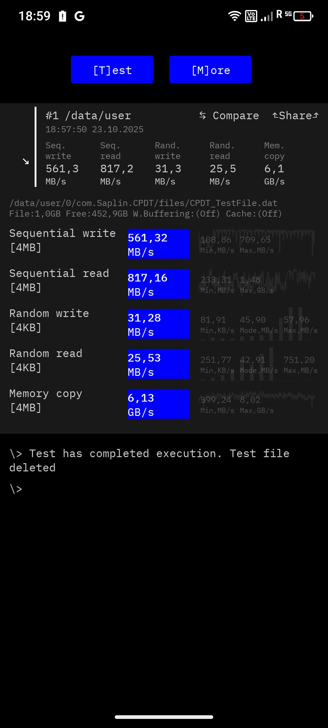 Trotzdem fällt die Minderleistung gegenüber der Konkurrenz ins Auge. Wenigstens hat sich der Hersteller beim Thema Speicher großzügig gezeigt und 12GB LPDDR4X RAM und 512GB UFS 3.1 Festspeicher verbaut. So erreicht der Festspeicher schnelle Übertragungsraten und auch das Bediengefühl ist flüssig. Allerdings merkt ihr beim Öffnen von größeren Apps den Unterschied zu schnelleren Geräten. Schon das Öffnen der Foto-App dauert länger, als ihr es vielleicht gewohnt seid. Mit einer microSD-Karte kann der Festspeicher um bis zu 2TB erweitert werden. Die GPU ist leistungsschwach und für Casual Games ausreichend, aber nicht mehr. Games wie Fortnite lassen sich nur in niedrigen Auflösungen genießen. Hier spiegelt sich das schwache Benchmark-Ergebnis wider.