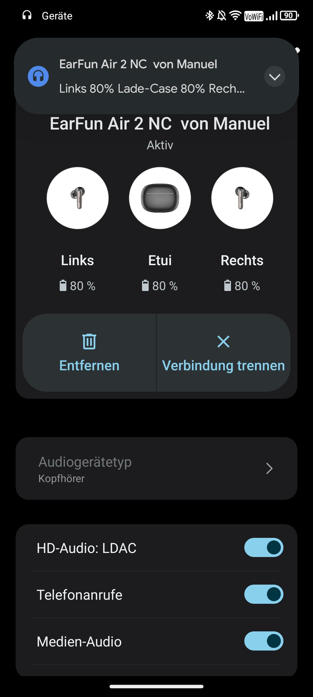In den heimischen vier Wänden verhält sich das Rugone Xever 7 Pro im WiFi unauffällig. Sowohl die Datenrate als auch die Reichweite bewegen sich auf einem guten Niveau, dank Unterstützung von WiFi 6. Der Wechsel der Funkzelle im Meshsystem stellte kein Problem dar. Ähnlich zuverlässig funktionierte das verbaute Bluetooth 5.2. Die Kopplung mit externen Geräten funktionierte reibungslos. Als Codecs für Bluetooth-Kopfhörer sind neben SBC, AAC auch LDAC verbaut. Oder ihr nutzt den 3,5 mm Klinkenstecker, um eure kabelgebundenen Kopfhörer zu betreiben. Die Buchse ist intern abgedichtet und versteckt sich nicht hinter einer Abdeckung. Für die übliche 32 Ohm Impedanz ist die Leistung des Anschlusses ausreichend.