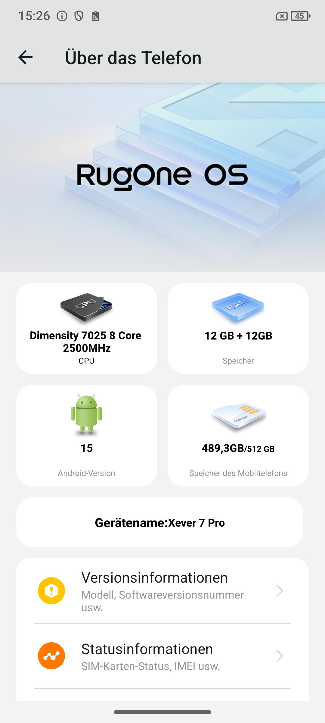 Wenn es einen Kritikpunkt am Rugone Xever 7 Pro gibt, dann beim Prozessor. Wir kennen den Mediatek Dimensity 7025 aus der unteren Mittelklasse und Modellen wie dem Cubot X100 Pro (zum Test) oder dem Honor 400 Lite (zum Test). Aber in einem Gerät um die 500€, sei es auch ein Outdoor-Smartphone, ist das zu wenig. Es sind insgesamt 8 Kerne verteilt, wovon nur 2 Leistungskerne sind. Die restlichen 6 Kerne sind Energiesparkerne. Immerhin wird die CPU schon in modernen 6nm gefertigt.