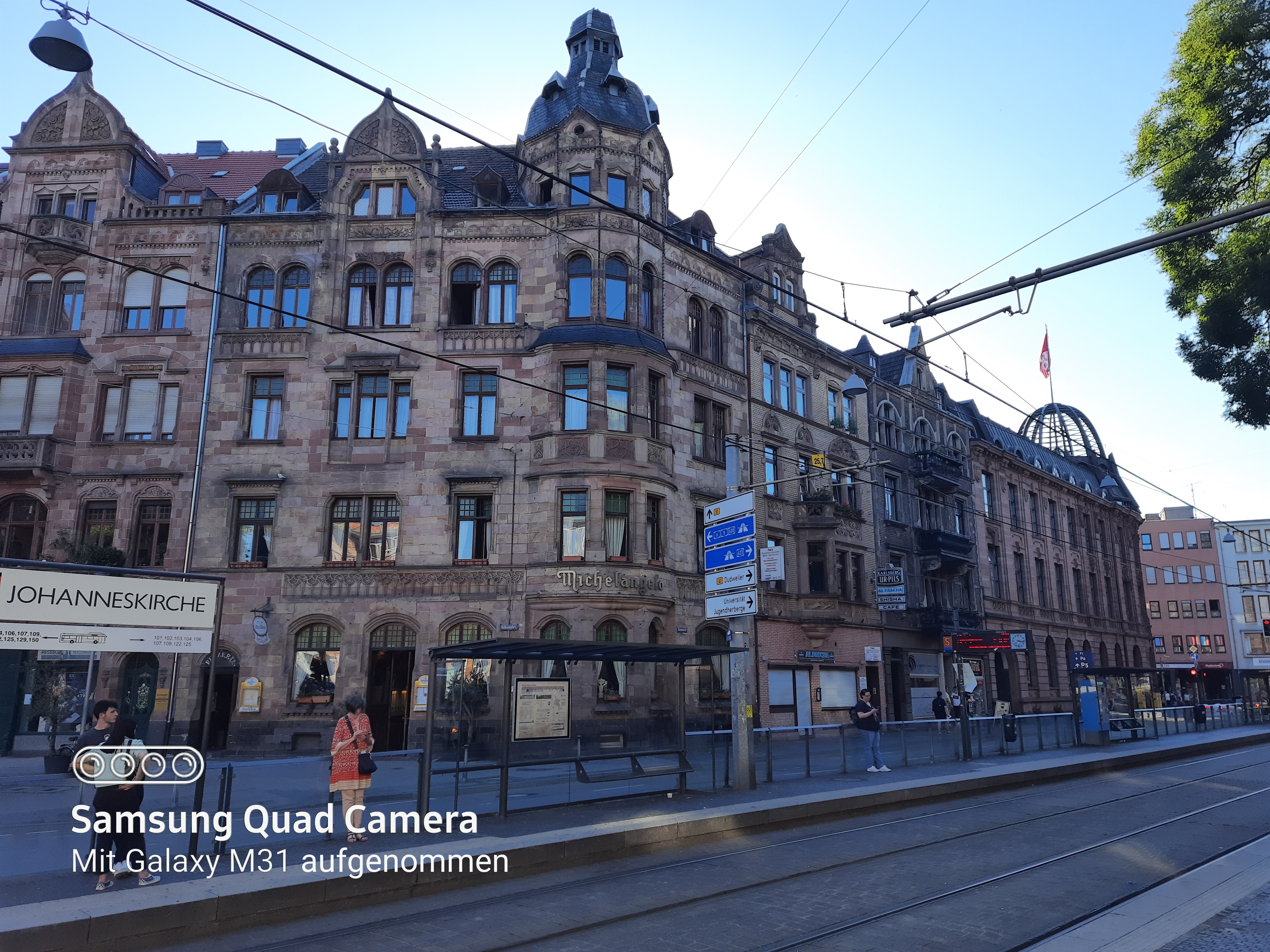 Die Nachtaufnahmen des Galaxy M31 sind zwar keine Katastrophe, wirklich überzeugen kann das Smartphone aber auch hier nicht. Farben werden noch ziemlich lebendig eingefangen, allerdings haben die Bilder ein starkes Bildrauschen und wirken etwas verwaschen. Ein Nachtmodus mit Langzeit-Belichtung steht für die Hauptkamera zur Verfügung und beseitigt diese Probleme teilweise. Bei Verwendung des Night-Mode wird jedoch der Bildbereich deutlich verkleinert.