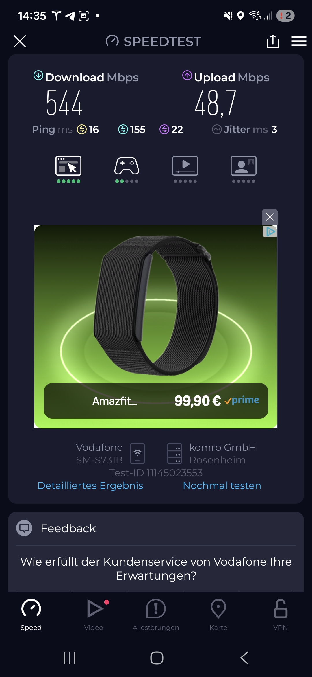 Der SAR-Wert des Samsung Galaxy S25 FE liegt bei 1,29 W/kg (Kopf) bzw. 0,86 W/kg (Körper). Die Gesprächsqualität war gut und sowohl VoLTE als auch VoWiFi werden unterstützt.