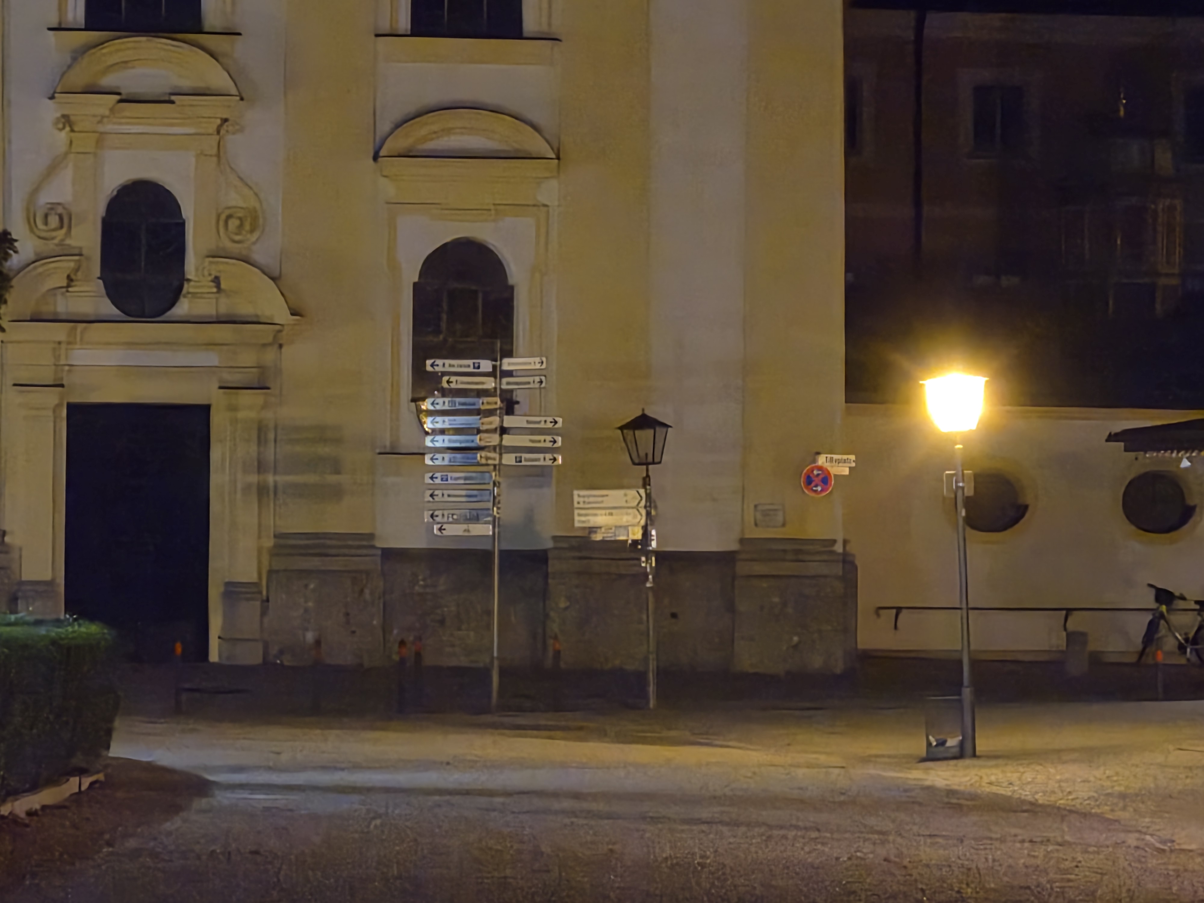 Typisch Samsung: Der Nachtmodus ist oft nicht vorhanden und greift nur bei sehr dunklen Szenen automatisch ein. Unsere Empfehlung: Nachtmodus manuell aktivieren. Dann werden die Bilder klarer, detailreicher und haben einen besseren Dynamikumfang, auch wenn das Nachschärfen gelegentlich etwas künstlich wirkt. Im Standardmodus sind die Fotos sonst weicher und rauschiger.