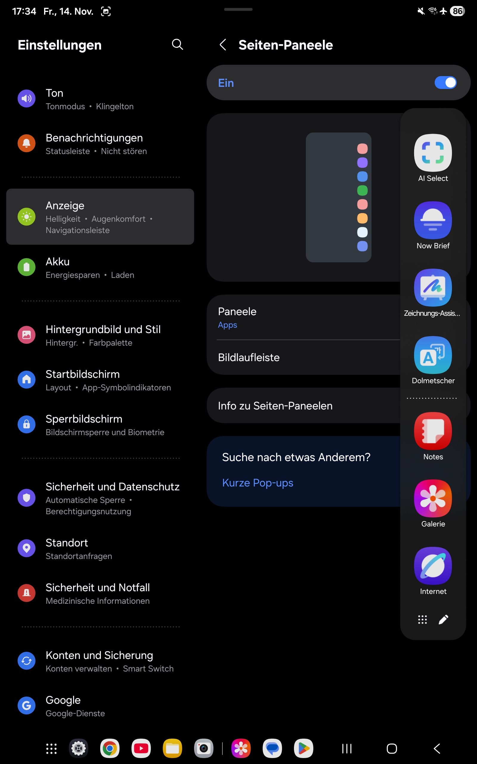 Für die Produktivität bleibt der DeX-Modus ein zentrales Feature. Dieser verwandelt die Tablet-Oberfläche in eine Desktop-Umgebung, die einer Windows-PC-Oberfläche ähnelt. In Kombination mit einem externen Monitor unterstützt das Tab S11 nun auch einen „Extended Mode”, der eine echte Dual-Screen-Nutzung inklusive Drag-and-Drop zwischen den Bildschirmen ermöglicht. Tipp: Von Haus aus ist die „DeX“-Schaltfläche in den Schnelleinstellungen mit der kabellosen Verbindung belegt. In den Einstellungen lässt sich dies ändern, sodass ihr ganz klassisch zwischen Tablet- und DeX-Umgebung wechseln könnt.