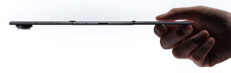 - Aufgeklappt: Hauchdünne 3,9mm an der schmalsten Stelle (ohne Kamerabuckel) – 159,2 x 214,1 x 3,9 Millimeter