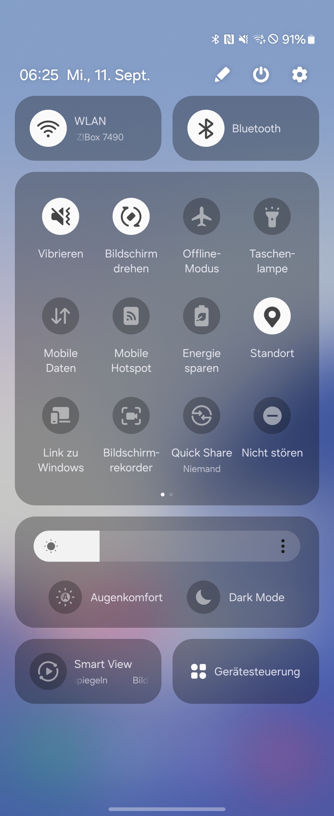 Die neuesten Konnektivitätsstandards sind mit WiFi 6 und Bluetooth 5.3 zwar nicht vorhanden, aber beides kann man kaum kritisieren. 2 Wände und 10 Meter von meinem Router entfernt kamen immer noch starke 460/50MBit/s aus meiner Gigabitleitung. Auch beim Bluetooth-Empfang gab es keine Auffälligkeiten. Die unterstützten Bluetooth-Codecs hat Samsung uns auf Nachfrage mitgeteilt: aptX HD mit Qualcomm Adaptiv, LDAC und SSC Samsung Seamless Codec. Das Galaxy Z Flip 6 unterstützt Dual-Band Navigation mit GPS, Glonass, Beidou, Galileo, QZSS und in der Praxis funktionierte das auch in der Stadt ohne Einschränkungen. Der Kompass war manchmal etwas zickig, ließ sich aber immer wieder neu kalibrieren. Neben dem Kompass sind noch ein Gyroskop, ein Beschleunigungssensor, ein Näherungssensor und ein Lichtsensor eingebaut. Auch ein Barometer zur Höhenmessung ist noch vorhanden. Bezahlt wird per NFC über Google Wallet oder Samsung Pay.