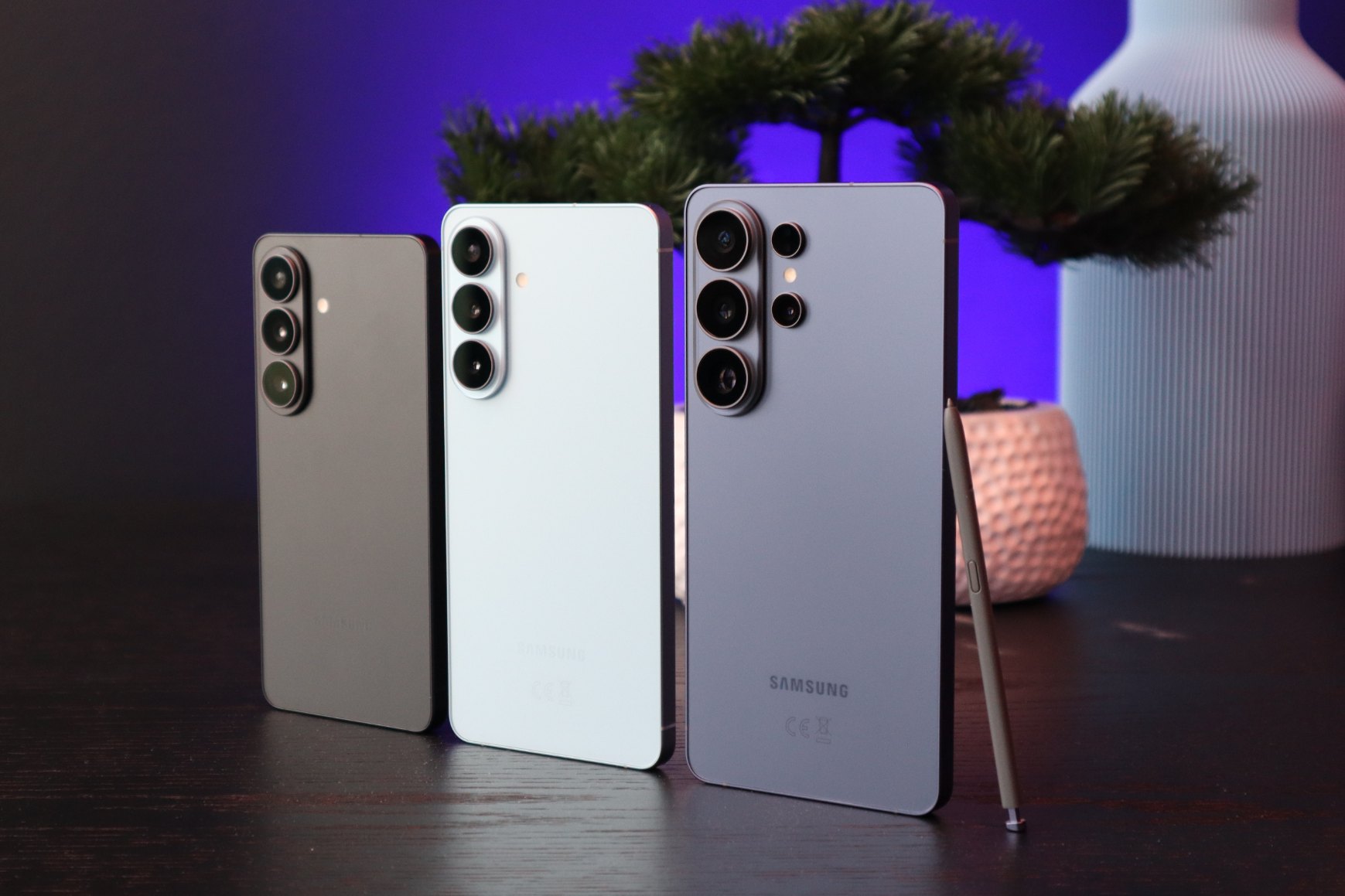 - Samsung S26 Serie: links das kleine Galaxy S26, dann S26+ und rechts das große S26 Ultra