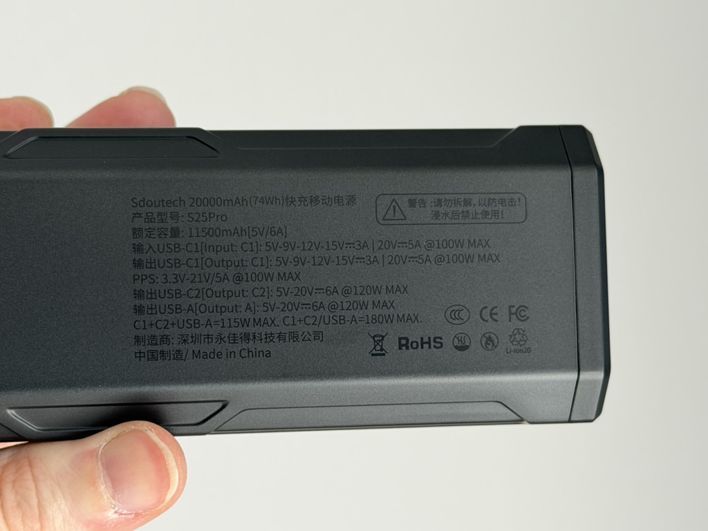 Die S25 Pro Powerbank bietet eine Kapazität von 20.000mAh und eine theoretische Gesamtleistung von 180W. Sie verfügt über zwei USB-C-Ports und einen USB-A-Port mit einer Höchstleistung von bis zu 120W je Port. Im Gegensatz zum Ladegerät wird die Powerbank ohne externe Kabel geliefert. Für die maximale Leistung empfiehlt sich das Kabel des eigenen Smartphones, über USB-C könnt ihr aber auch problemlos auf Drittanbieter-Kabel zurückgreifen.