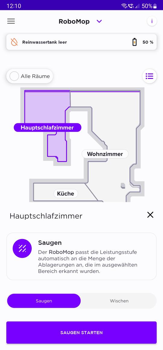Anschließend kann mit der Reinigung begonnen werden. Was jedoch direkt auffällt, ist der geringe Funktionsumfang der App. Zwar ist alles strukturiert und logisch aufgebaut, sodass man sich schnell zurechtfindet, doch bietet Shark hier nur grundlegende Einstellmöglichkeiten: die Benachrichtigungslautstärke, die Sprache (inklusive Deutsch), die Nicht-Stören-Funktion und die Option, ob der Schmutzbehälter während der Reinigung alle 30 Minuten in der Station ausgeleert werden soll. Für einen Saugroboter in dieser Preisklasse erwarte ich doch schon deutlich mehr Einstellmöglichkeiten.