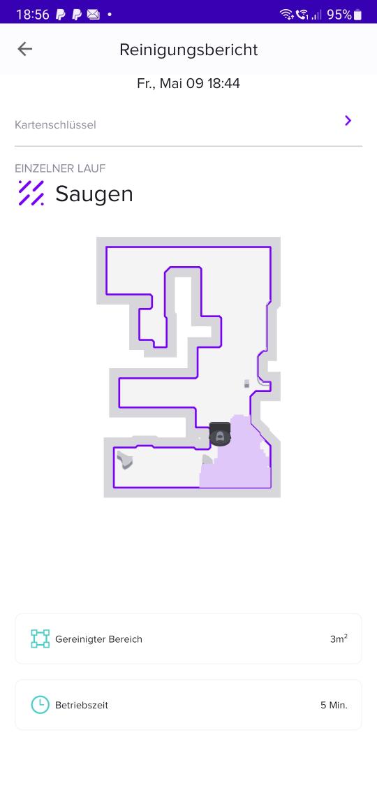 Absolut desaströs ist zudem die Tatsache, dass die App beim Ändern von Einstellungen oder bei Rückkehr zum Home-Menü permanent Kontakt zum Server aufnehmen muss. Dies hat teilweise eine Wartezeit von bis zu sechs Sekunden pro Aktion zur Folge. Für mich ist das eine absolute Vollkatastrophe! Auch die Kartierung verlief nicht einwandfrei. So wurde ein etwa 4 m² großer Bereich im Kinderzimmer einfach nicht kartografiert, obwohl der Bereich völlig frei war. Immerhin reinigt der Saugroboter diesen Bereich dennoch. Kommen wir zum nächsten Punkt, der mein Unverständnis hervorruft: Grundsätzlich ist es ja gut, dass man neben der Reinigung der kompletten Wohnung oder eines kompletten Raumes auch nur eine bestimmte Zone saugen oder wischen lassen kann. Unverständlich ist für mich jedoch, dass sich die Größe des zu reinigenden Bereichs nicht anpassen lässt. Ebenfalls nicht wirklich überzeugend ist die Positionsanzeige des Saugroboters während der Reinigung. Hier gibt es eine permanente Verzögerung von bis zu zehn Sekunden. Auch die Darstellung der Karte empfinde ich als zu unpräzise. Nach Abschluss des Reinigungsprozesses kann man sich einen Bericht anzeigen lassen. Dies ist allerdings ausschließlich für die letzte Operation möglich. Dank der Kompatibilität mit Alexa und dem Google Assistant kann der Saugroboter auch per Sprachbefehl gesteuert werden.