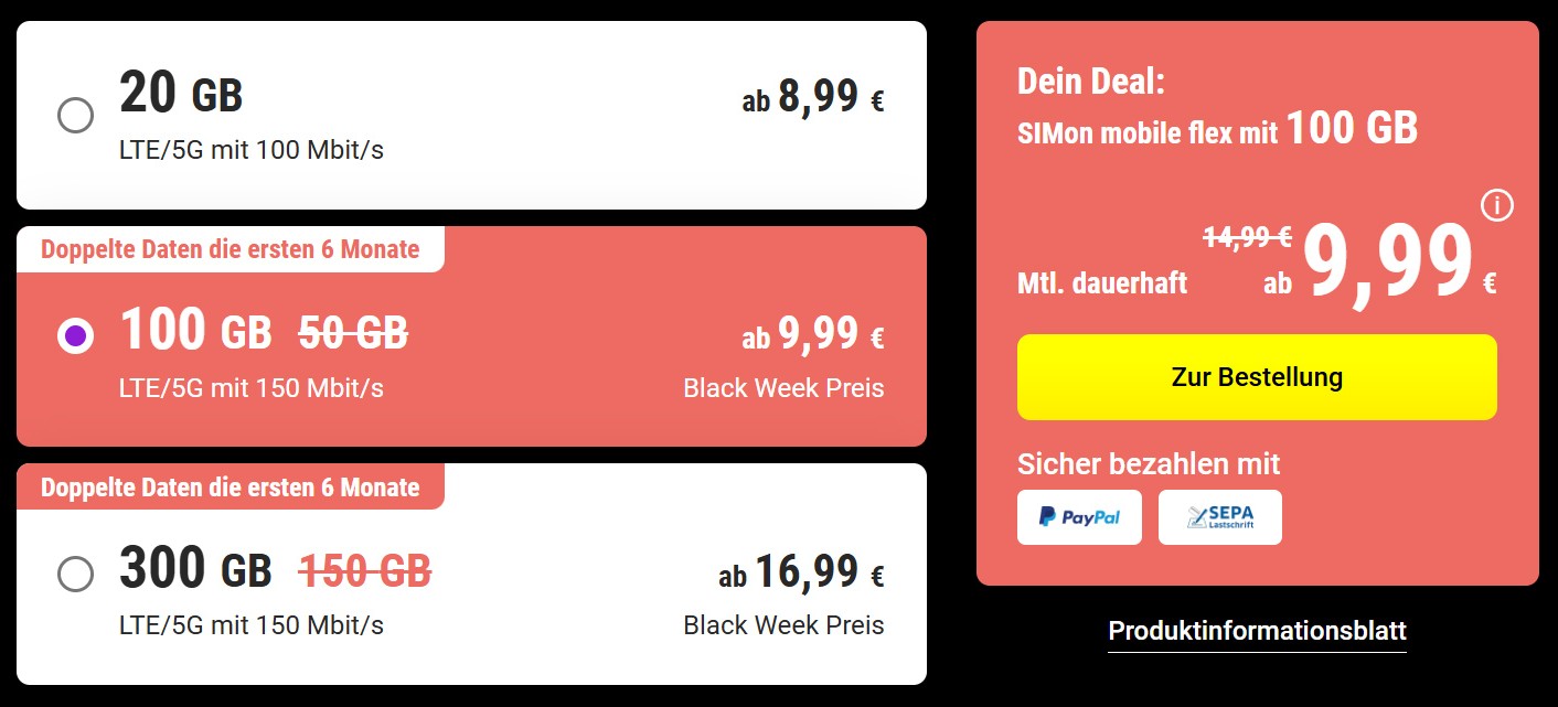 SIMon mobile Black Week Deals: 100GB für 10€ mtl.