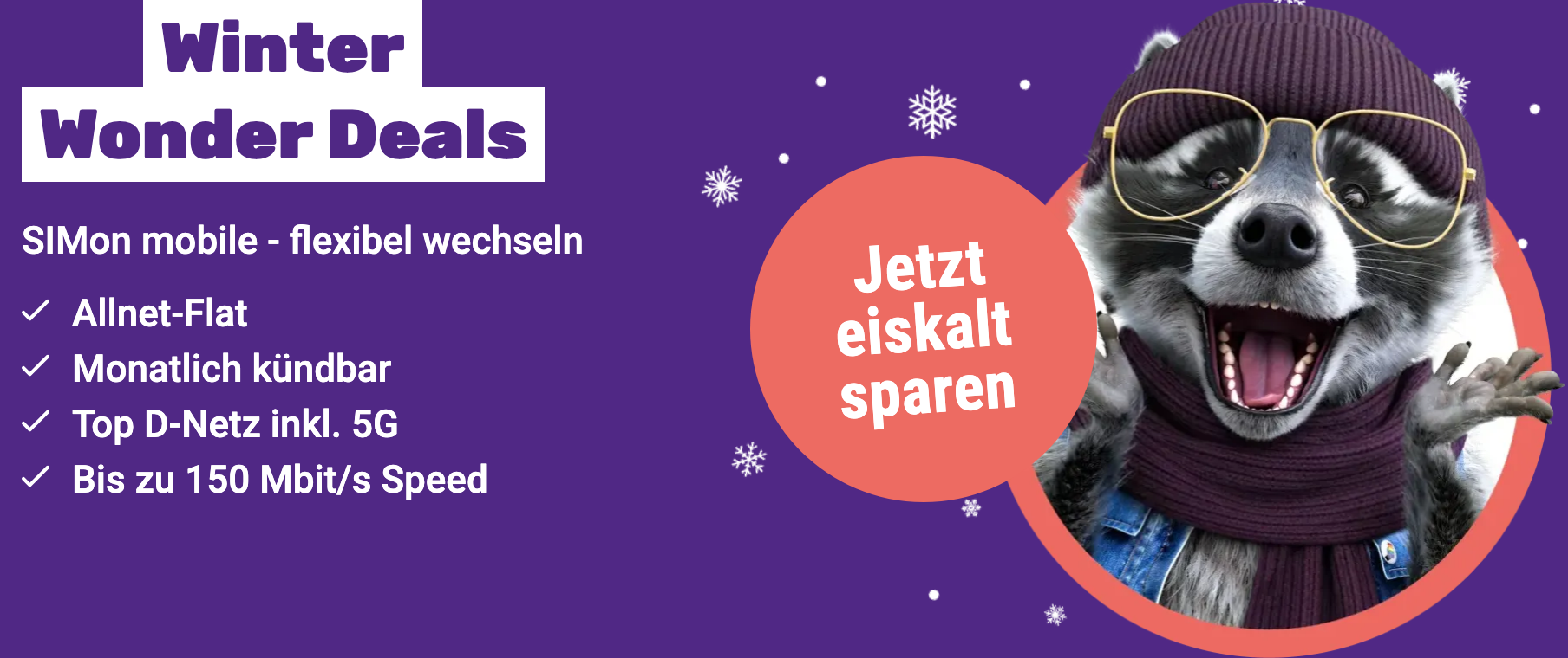 Simon Wintersale mit 80GB 5G für nur 9,99€ im Monat