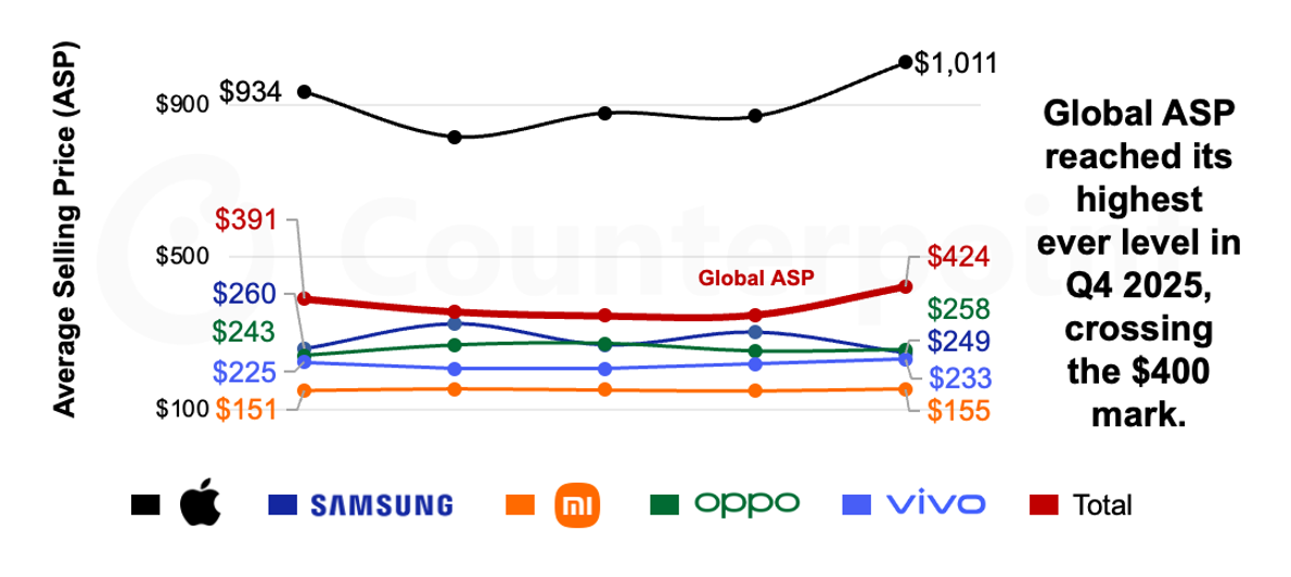 Smartphones waren in Q4 2025 durchschnittlich so teuer, wie noch nie zuvor