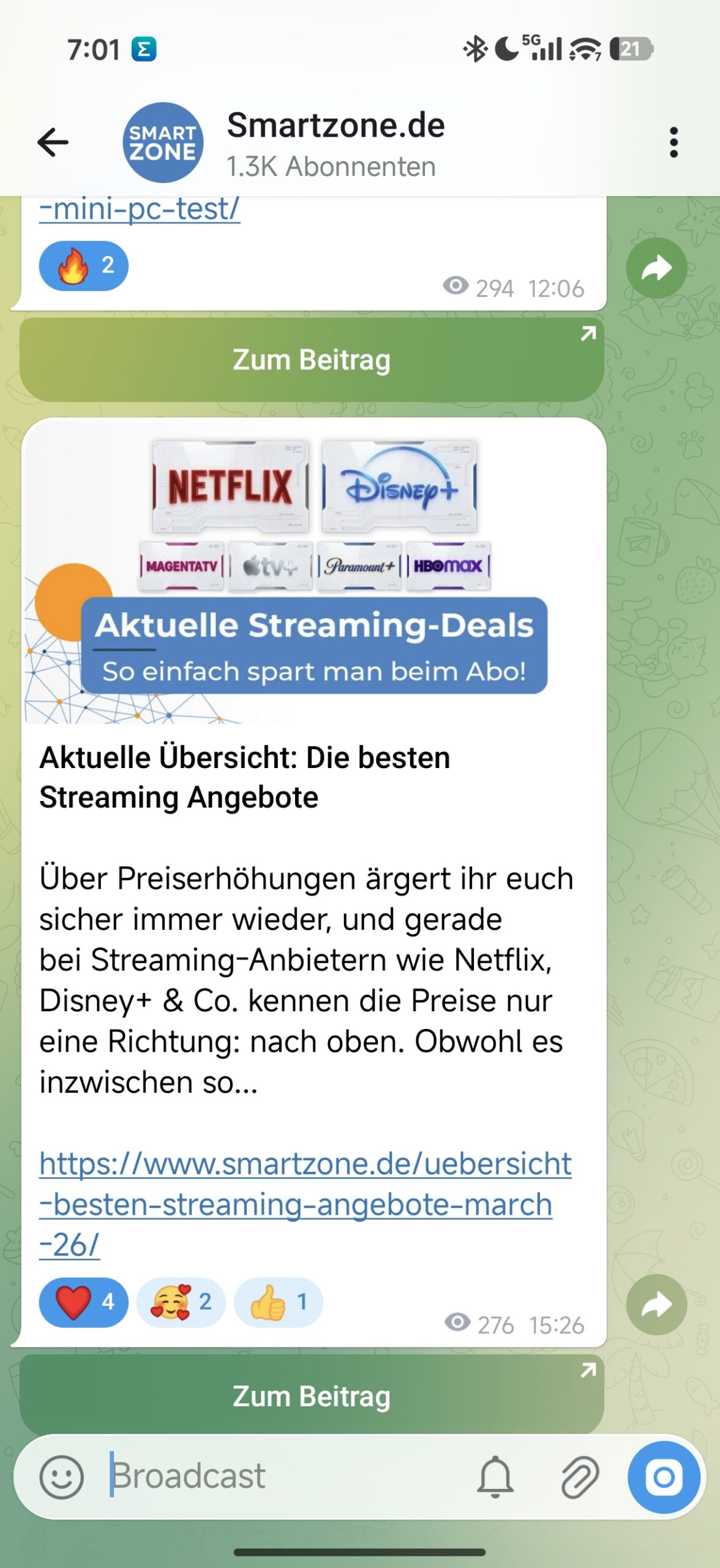 Wir haben nun zwei Smartzone-Kanäle eingerichtet, mit denen ihr euch auch ohne das Eintippen unserer URL auf dem Laufenden halten könnt. Wenn ihr bereits bei Telegram aktiv seid, könnt ihr die Channels einfach über diese Links abonnieren: