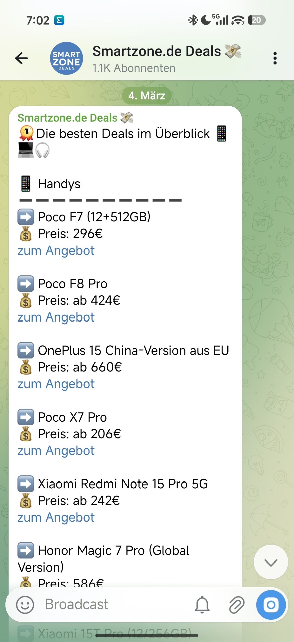 Cool wäre es, wenn man Deals irgendwie nach Hersteller erhalten könnte. Also z.B. Realme-Deals in einem Channel, Xiaomi-Deals in nem anderen usw.