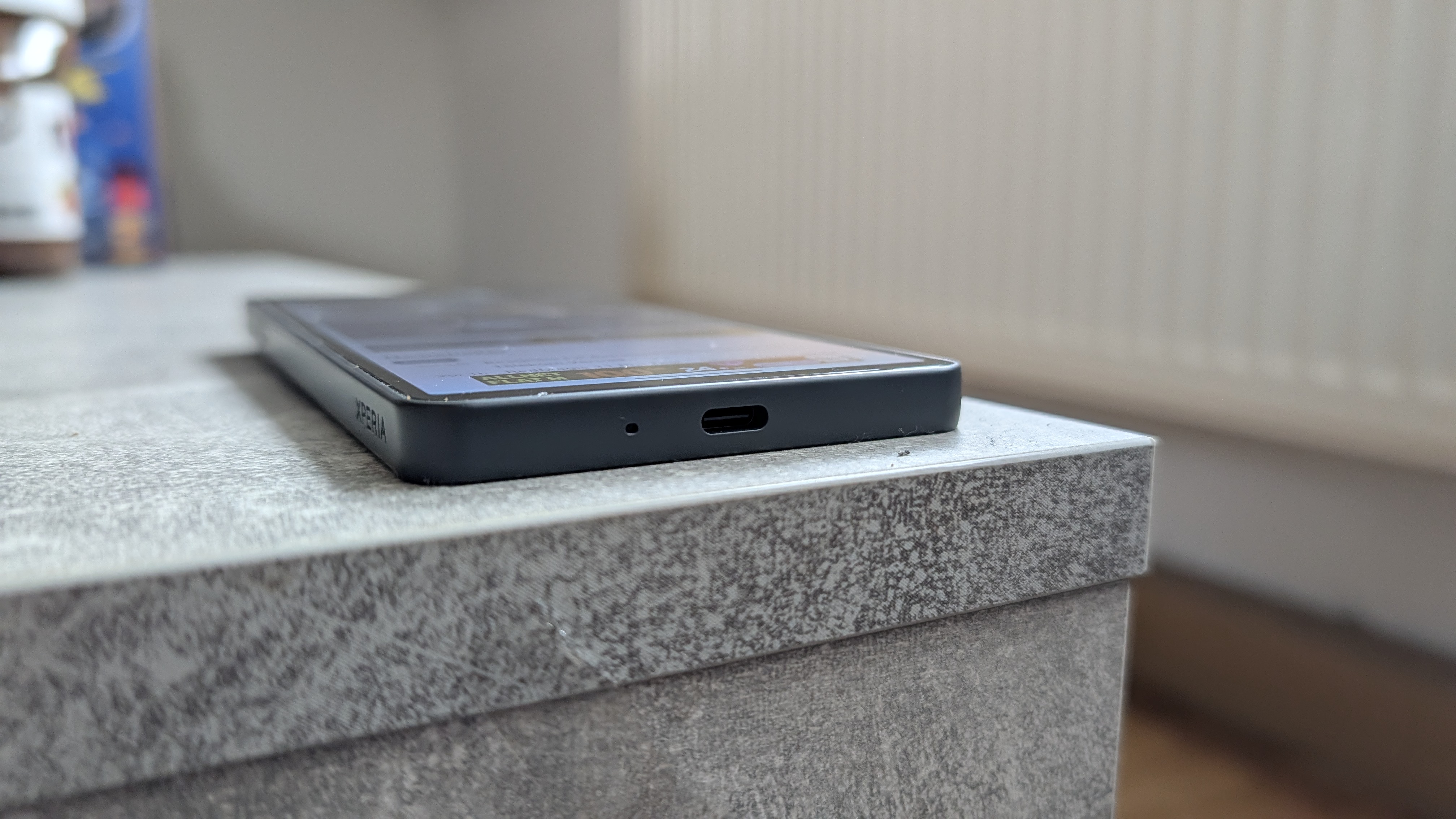 Sony verbaut im Xperia 10 VII einen USB-Anschluss (USB 2.0), einen Slot für eine Nano-SIM-Karte und eine microSD-Karte und Stereo-Lautsprecher, die solide klingen. Die im Vergleich mit der Konkurrenz ziemlich breiten Ränder um den Bildschirm haben die optische Überarbeitung leider überstanden. Immerhin gibt es keine Notch oder andere Unterbrechung.