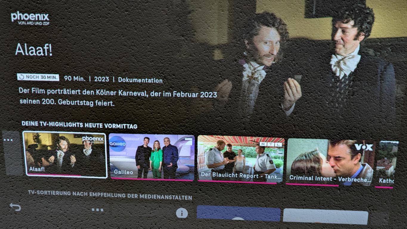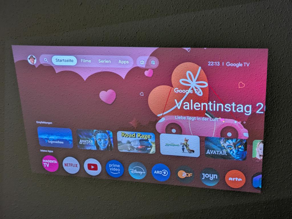 Die Benutzeroberfläche reagiert flüssig. Streaming-Dienste wie Netflix, Prime Video und YouTube stehen regulär zur Verfügung. Die App-Auswahl entspricht dem Standard von Google TV. Kunden von Magenta TV können die entsprechende App herunterladen.
