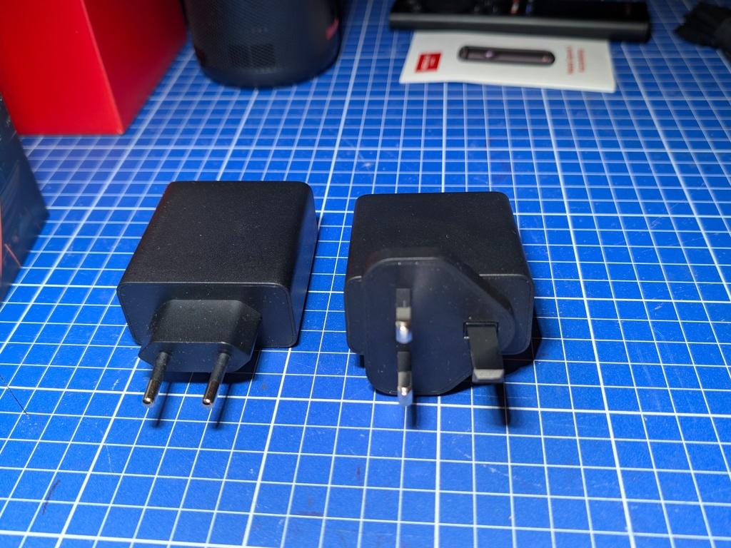 Ein HDMI-Kabel liegt nicht bei und muss bei Bedarf separat beschafft werden. Im Lieferumfang liegen zwei USB-C-Netzteile bei, eines mit europäischem Stecker und eines mit Commonwealth-Stecker. Diese Lösung wirkt wenig nachvollziehbar. Für den hiesigen Markt hätte ein einzelnes Netzteil mit austauschbarem Steckaufsatz ausgereicht, wie es bei vielen anderen Geräten üblich ist.