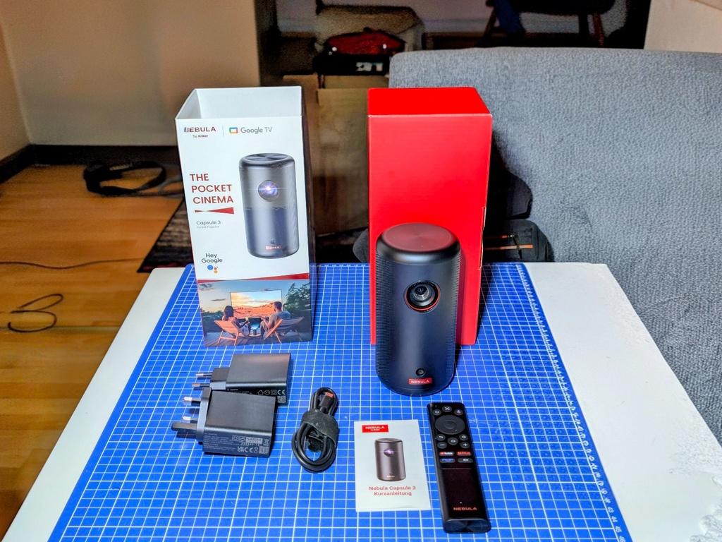 Der Nebula Capsule 3 kommt in einer kompakten Verpackung zu euch. Der Lieferumfang ist funktional gehalten. Im Karton findet ihr: