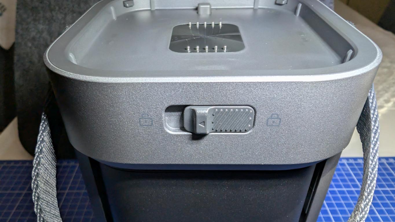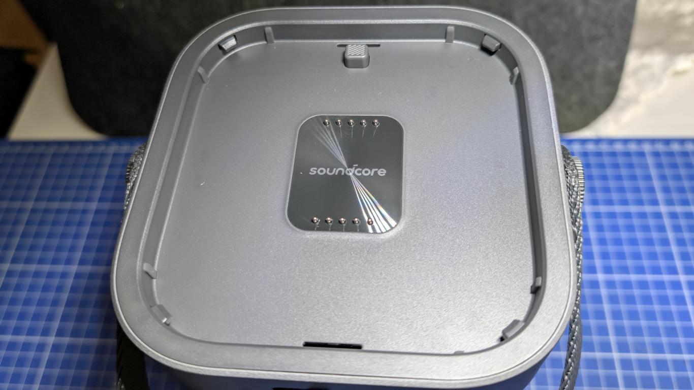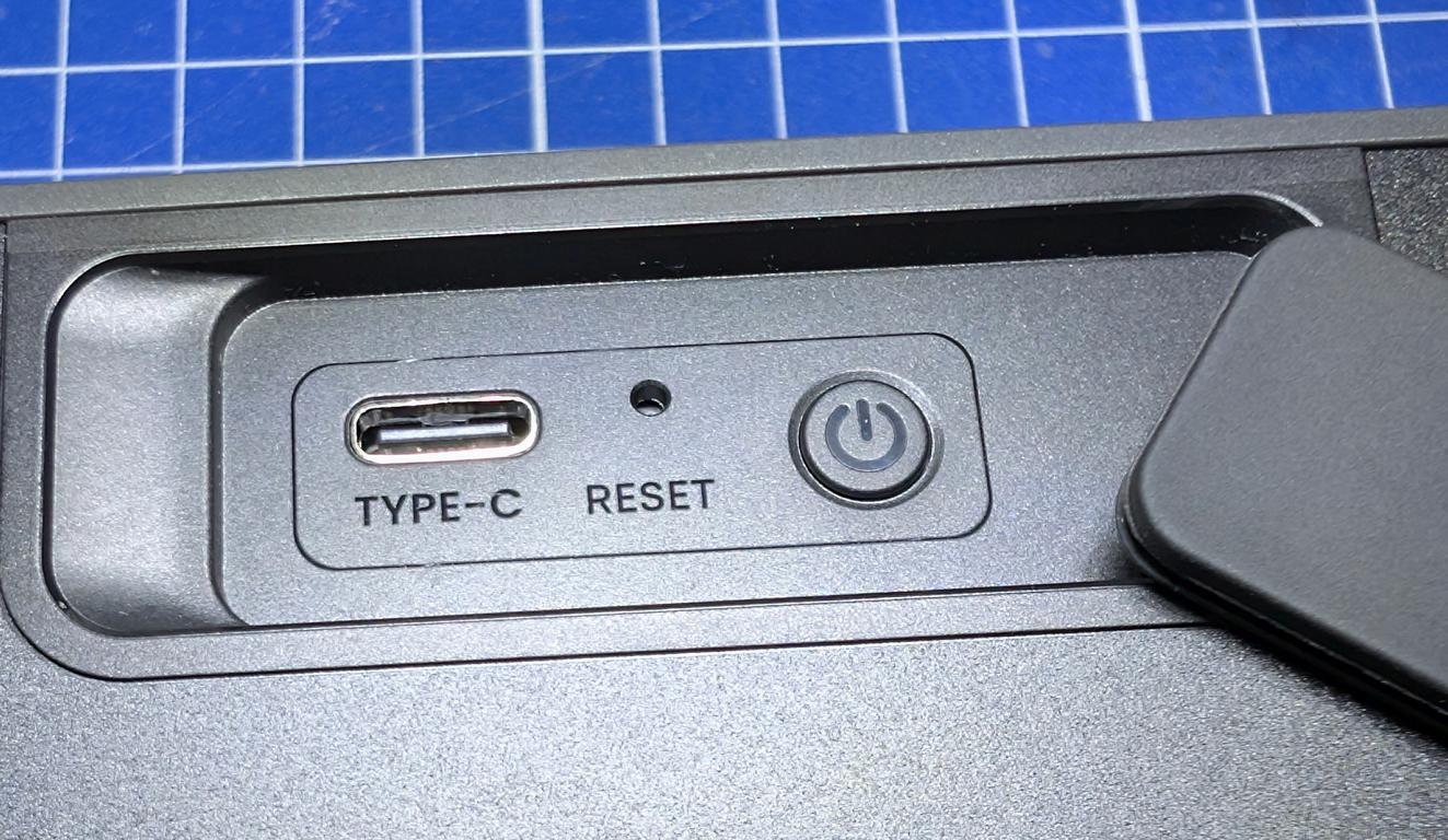 - Seperater Ladeanschluss und Power-Knopf am Lautsprecher