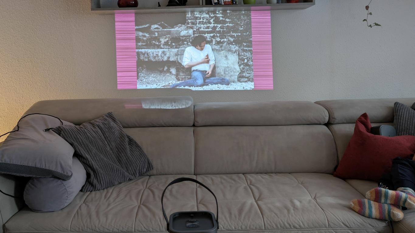 Die Herstellerangabe zur Helligkeit liegt bei 650 ANSI-Lumen. Das ist deutlich unterhalb stationärer Heimkino-Projektoren, aber oberhalb vieler kompakter Akku-Beamer.