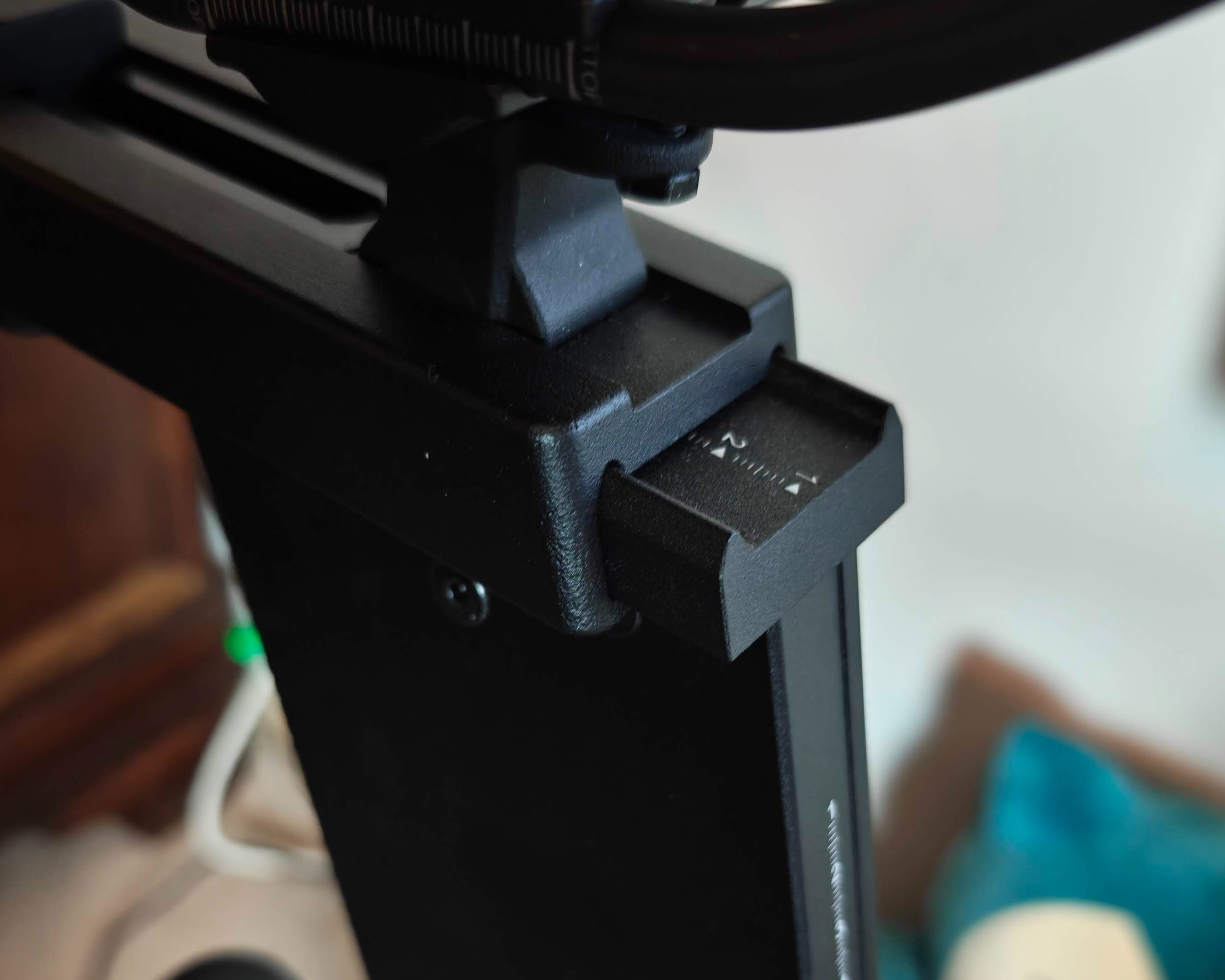 Rechts am Display befinden sich der Powerbutton (bzw. nur Standby-Button) und zwei Lautstärketasten. In der Lenkermitte ist ein Stativgewinde, z. B. wenn man eine Garmin-Halterung montieren möchte. Ein USB-C-Port zum Laden steht hier schon bereit. Ein zweiter befindet sich hinten am Bildschirm. Eine dezente LED zeigt jederzeit beim Pedalieren die Leistungszone an. Im Rahmen ist schon ein Flaschenhalter integriert, sodass es keinen Tisch neben dem Indoor-Fahrrad braucht.
