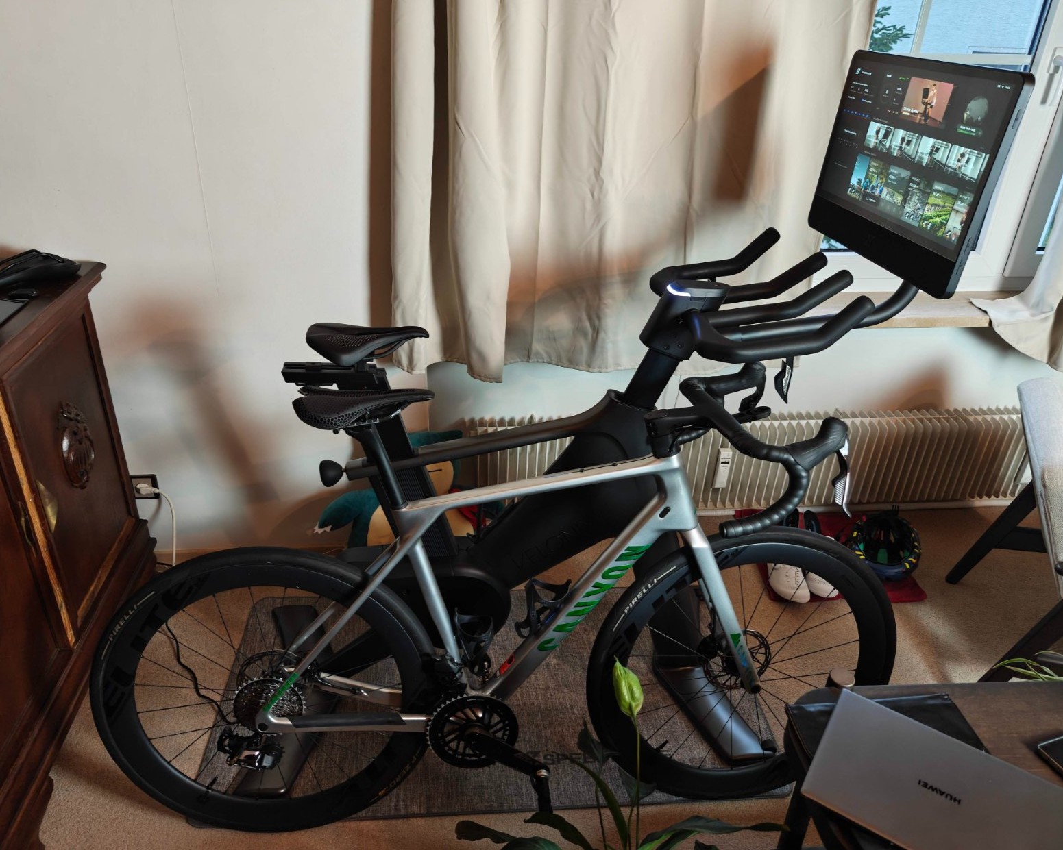 Ein klassischer Rollentrainer oder Smart-Trainer für das vorhandene Fahrrad hätte es bei mir auch getan, aber mit so einem High-End-Trainingsrad macht es doch mehr Spaß. Wer bereits das passende Fahrrad daheim hat (und am besten auch einen Laptop, PC oder Tablet), bekommt mit einem Smarttrainer das passende Setup deutlich günstiger. Dann muss für den Wechsel von drinnen nach draußen nur das Hinterrad eingespannt werden. Bei circa 300 € geht es los. Und ein weiterer Vorteil: Das Bikefitting ist schon erledigt.