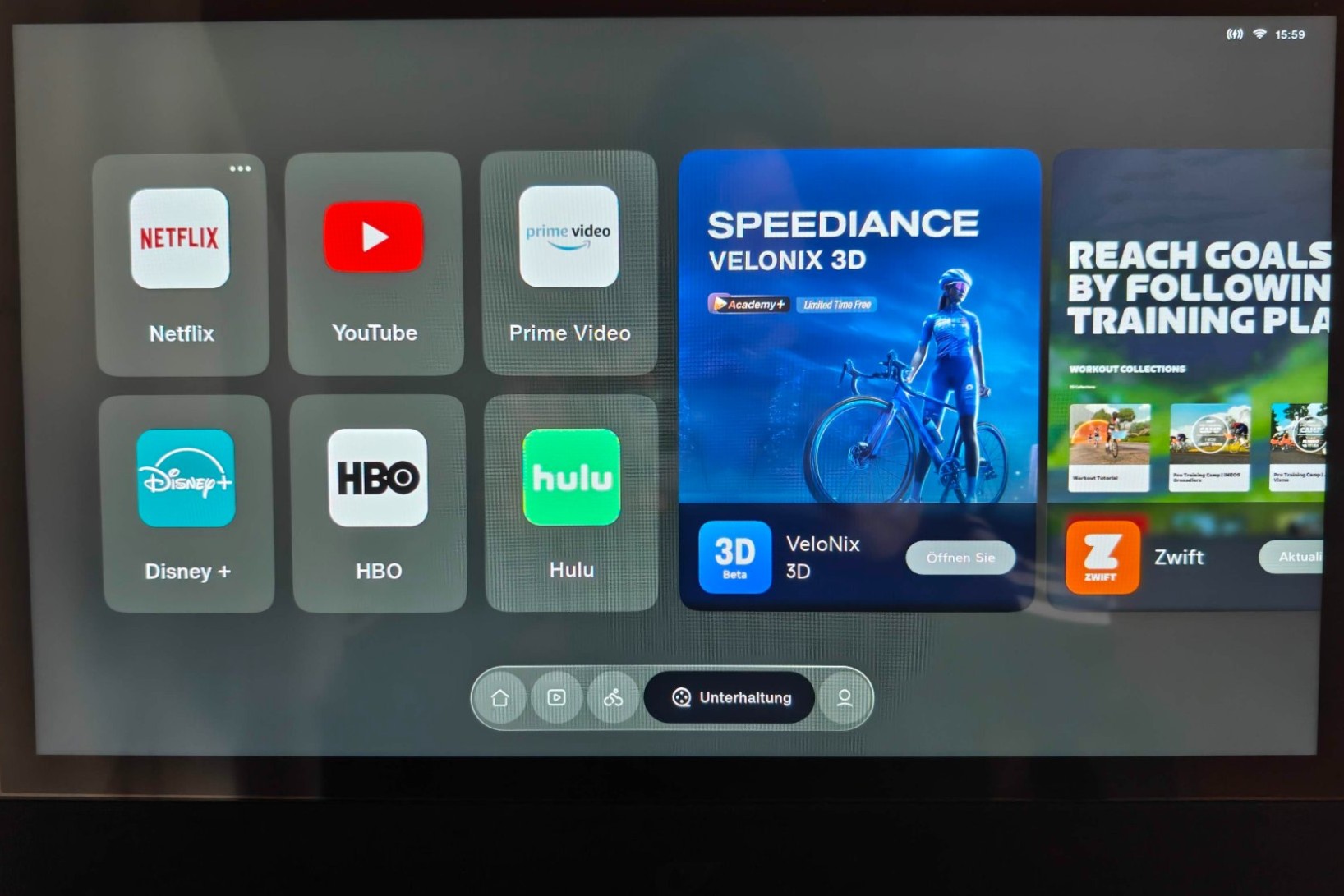Das Software- und App-Angebot ist von Haus aus riesig. Auf dem (Android-?) System sind auch die größten Videostreaming-Apps und Zwift vorinstalliert, aber eine Möglichkeit, andere Apps nachzuinstallieren, gibt es wohl nicht.
