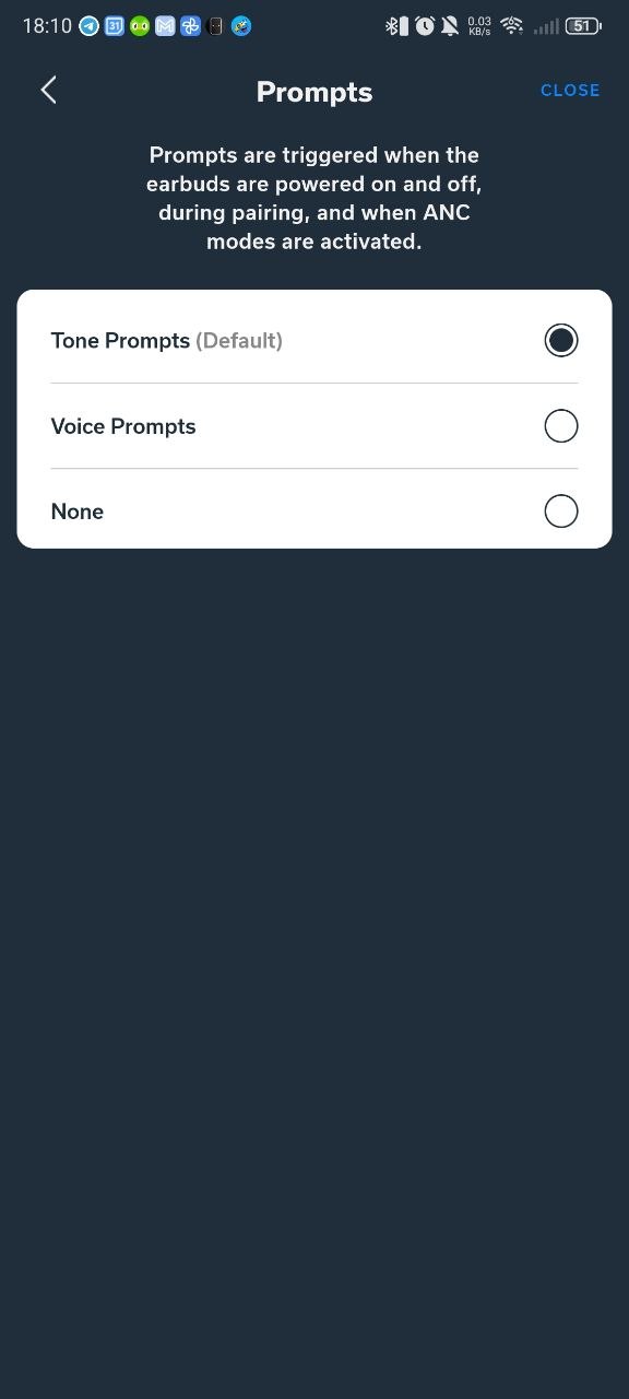 Weiterhin gibt es eine zweite Einstellungsseite. Einige der Optionen von der Startseite sind hier doppelt aufgeführt, wie das Auffinden der Buds. Dafür führt ihr hier auch Firmwareupdates durch, könnt einen dynamischen EQ zuschalten und zwischen Signaltönen und Sprachausgabe wechseln. Ein komplettes Abschalten ist ebenfalls möglich. Insgesamt hat sich Status Audio nicht lumpen lassen. Die App ist übersichtlich umgesetzt und benötigt kein Konto.
