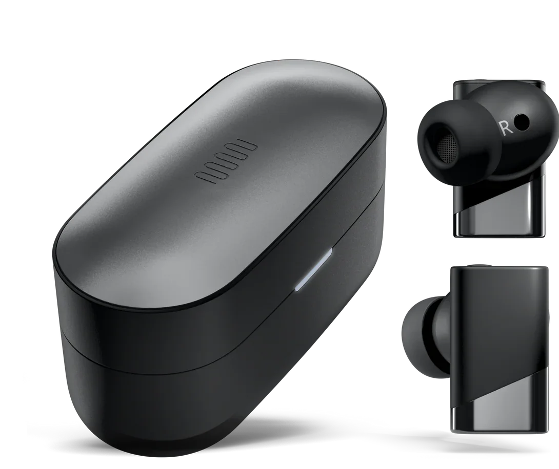 Mit drei Treibern pro Kopfhörer legt Status Audio zumindest den Grundstein für eine gute Klangqualität, indem die Audiospur auf die jeweils dafür vorgesehenen Treiber aufgeteilt wird. Zum Einsatz kommen ein recht großer 12mm-Dynamiktreiber sowie zwei Knowles Balanced Armature Treiber. Statt einer 3D-Audiosimulation via Spatial Audio nutzt der Hersteller lieber eine KI-aufgebesserte Gesprächsqualität. Die ANC-Leistung soll bei einer Dämpfung von 52dB liegen.