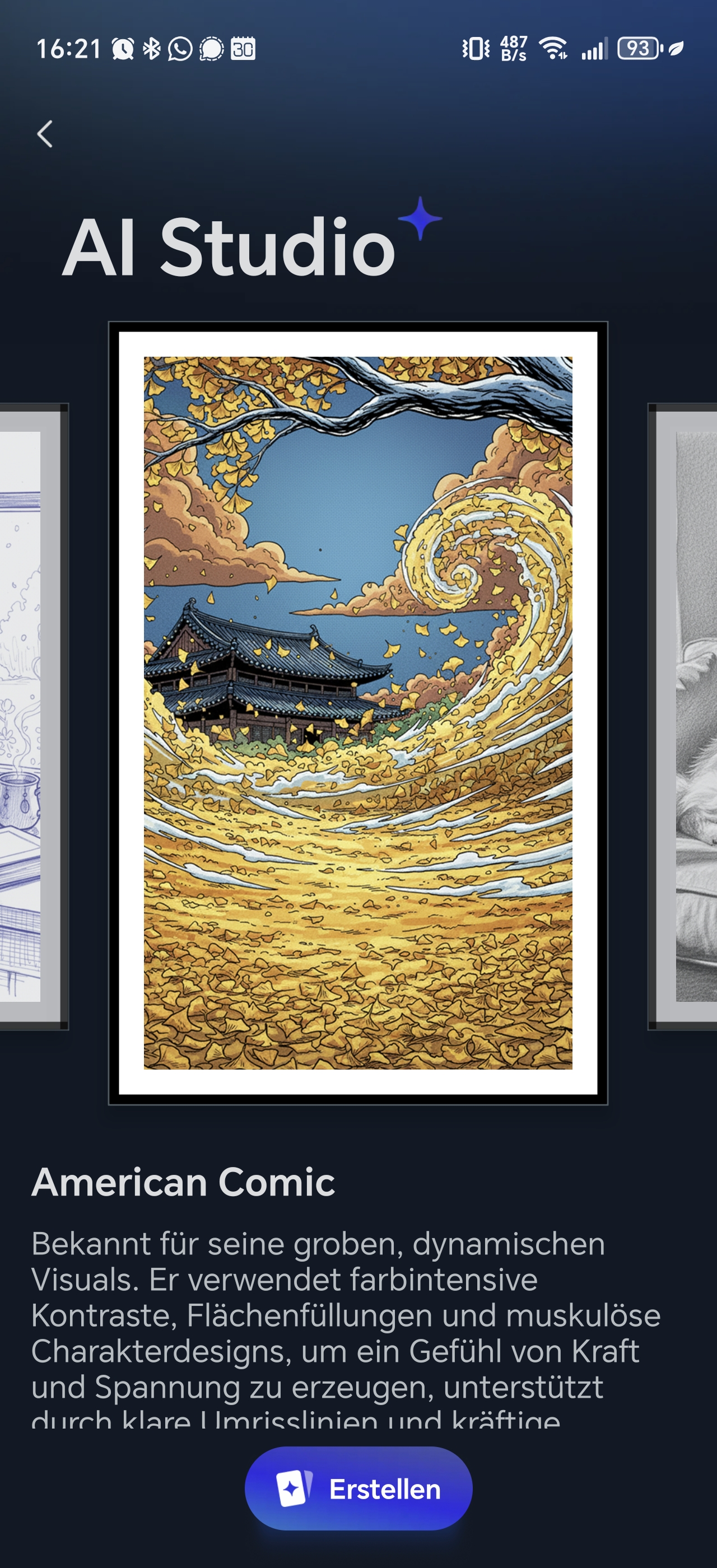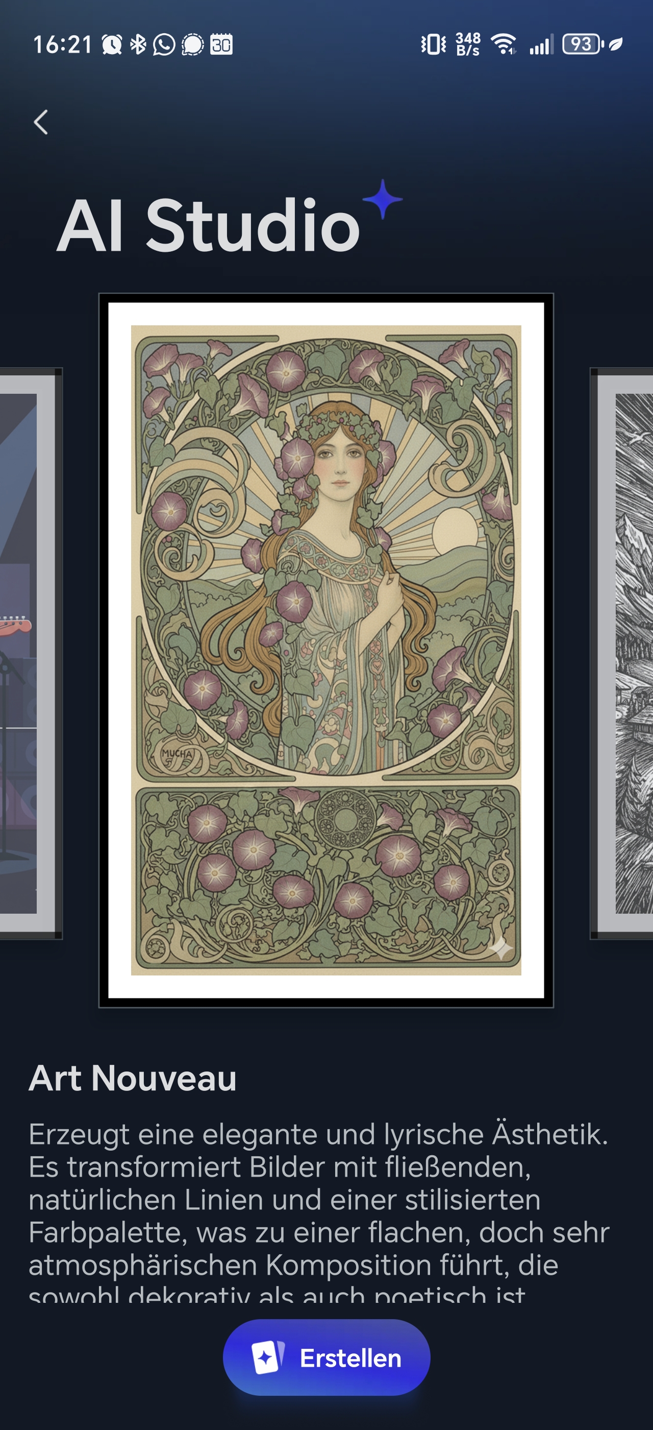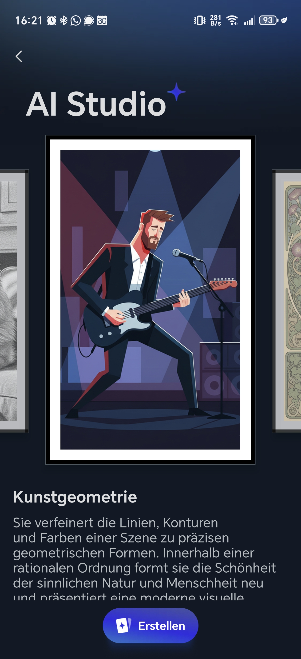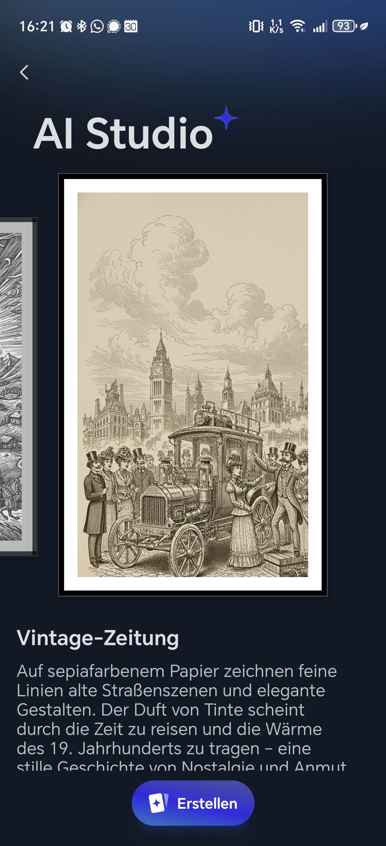 Die App verfügt außerdem über eine KI-Funktion, die jedoch kostenpflichtig ist. Damit könnt ihr Porträts in Gemälde verwandeln, klassisch über einen Prompt ein Bild erstellen oder auch durch andere Filter das Bild bearbeiten lassen. Diese Funktion ist mit 3,99€ pro Monat recht preisintensiv, wenn man bedenkt, dass viele KI-Anwendungen dies kostenlos ermöglichen.