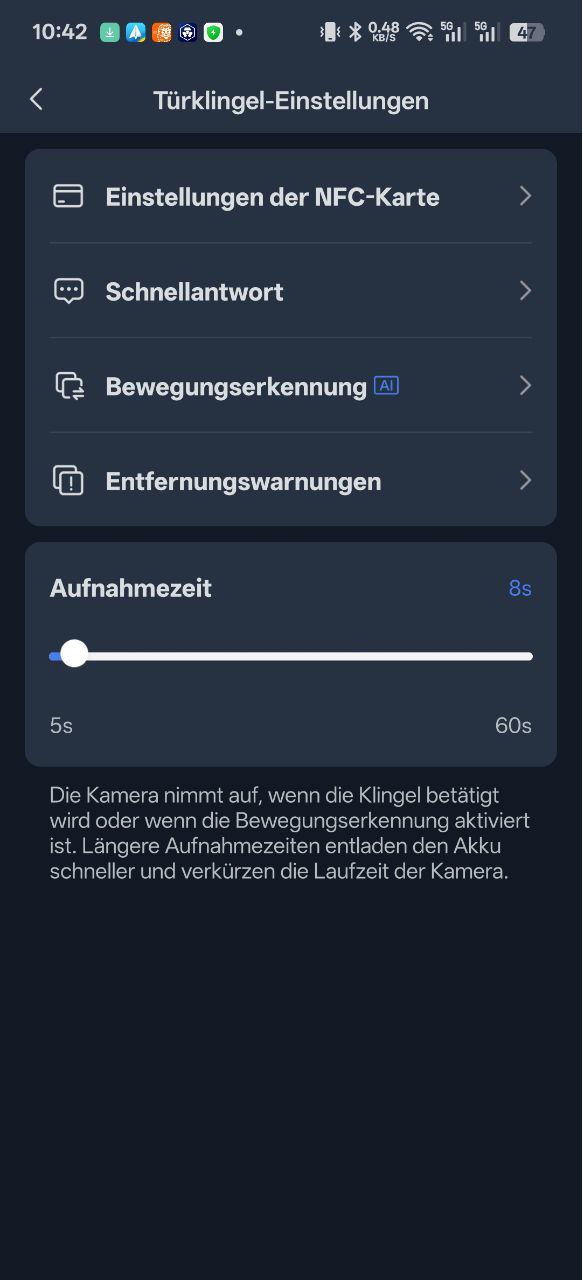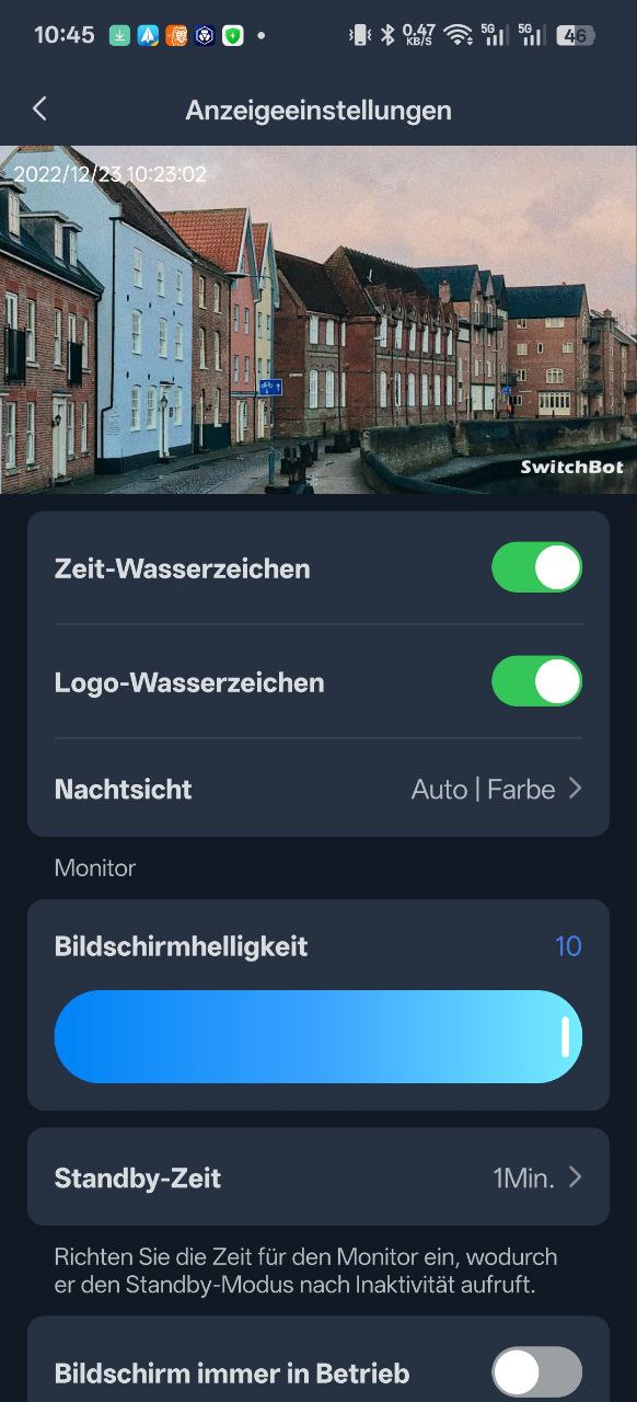Wie es sich für eine smarte Klingel gehört, gibt es in der App zahlreiche Konfigurationsmöglichkeiten und Funktionen. So lassen sich grundlegende Dinge einstellen wie Datumsformat, Lautstärke der Innenklingel und der Außenklingel, der Klingelton mit 10 Optionen, Bildschirmhelligkeit usw. Schön ist auch, dass sich die LED-Beleuchtung auf Wunsch deaktivieren lässt. Folgende Funktionen und Konfigurationsmöglichkeiten bietet die SwitchBot Klingel im Detail: