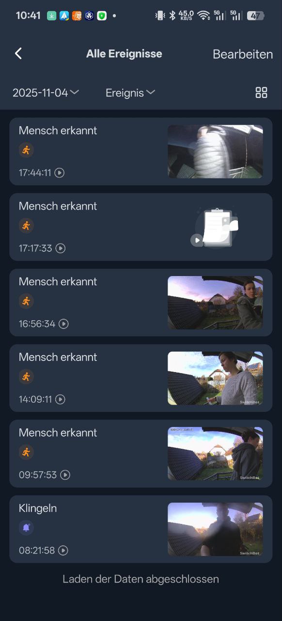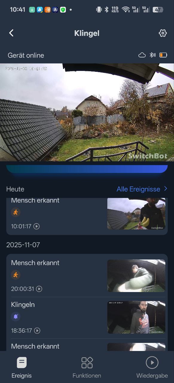 Es ist wirklich schade, dass die Videos in einer Auflösung von nur 640 x 360 Pixel gespeichert werden. Videos werden zudem in etwa 15FPS aufgenommen. Kein guter Wert, aber ausreichend für den Anwendungsfall. Dies gilt sowohl für die Speicherung auf der MicroSD als auch in der SwitchBot-Cloud. Es ist unmöglich, nachträglich an 2K-Aufnahmen zu kommen. Der einzige Vorteil liegt in der geringen Speichergröße der Videos. Jedoch hätten wir hier gerne die Wahl gehabt, die Videos in höherer Auflösung zu speichern. Vor allem als „Premium-Kunde“ mit Cloud-Abo. Natürlich reicht diese Auflösung definitiv aus, um zu erkennen, wer geklingelt hat. Möchtet ihr jedoch im Zweifelsfall etwas mehr Details sehen, ist dies schlichtweg nicht möglich. Anfangs hielt ich die mitgelieferte 4GB Speicherkarte für viel zu klein dimensioniert für eine 2K-Kamera. Aber so verbrauchen die Kurzvideos nur wenige 100kB je nach Aufnahmelänge.