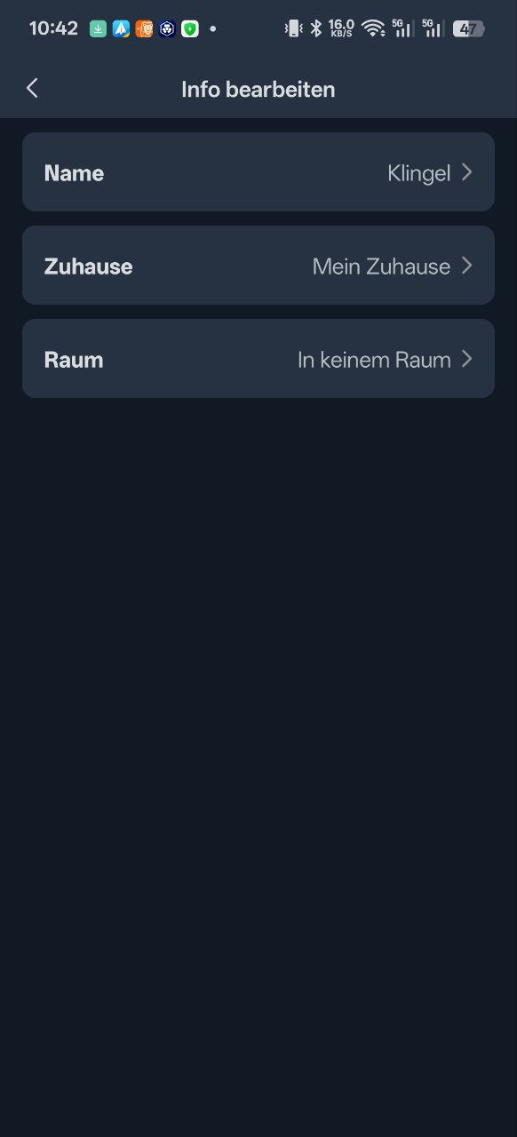 | Raum/Zuhause | Zuweisung zu Standort oder Raum, um Ordnung in der App zu schaffen. |