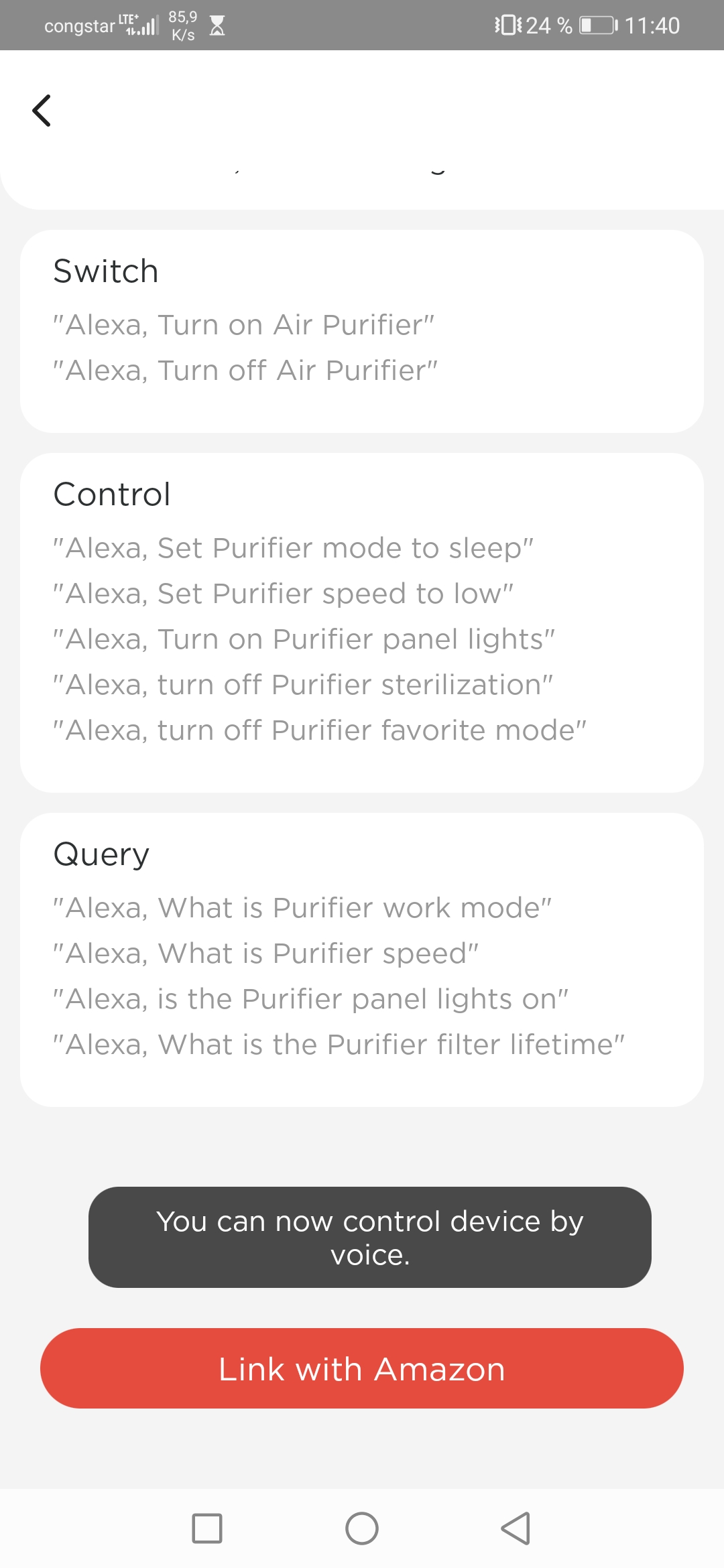 Kinderleicht ist die Integration ins Smart Home, hier am Beispiel Alexa: In der TCL Home-App auf “Alexa” klicken – der Rest geht wie von selbst. Der Clou: Der Breeva A3 ist mit sehr vielen Funktionen in Alexa integriert und diese lassen sich per Sprachbefehl aktivieren und deaktivieren.
