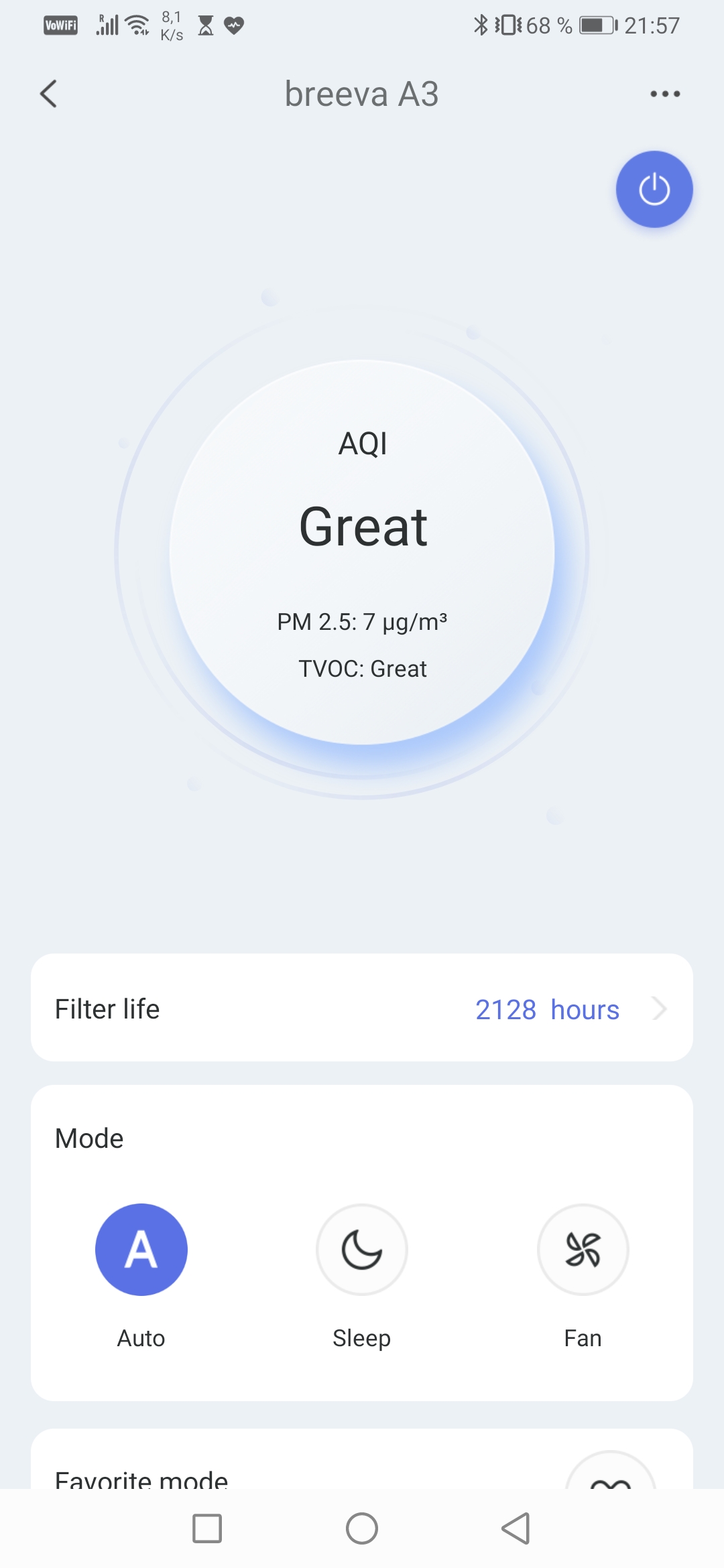 Am leichtesten geht das Konfigurieren in der App. “TCL Home” ist übersichtlich gehalten, führt durch den Installationsprozess (WLAN-Taste am Luftreiniger drücken, warten, fertig) und bietet essenzielle Funktionen. Im Automatikmodus verlässt sich der Breeva A3 auf seinen Laser- und VOC-Sensor. Letzterer spürt “volatile organic compounds”, also flüchtige organische Verbindungen wie Aceton oder Ethanol auf.