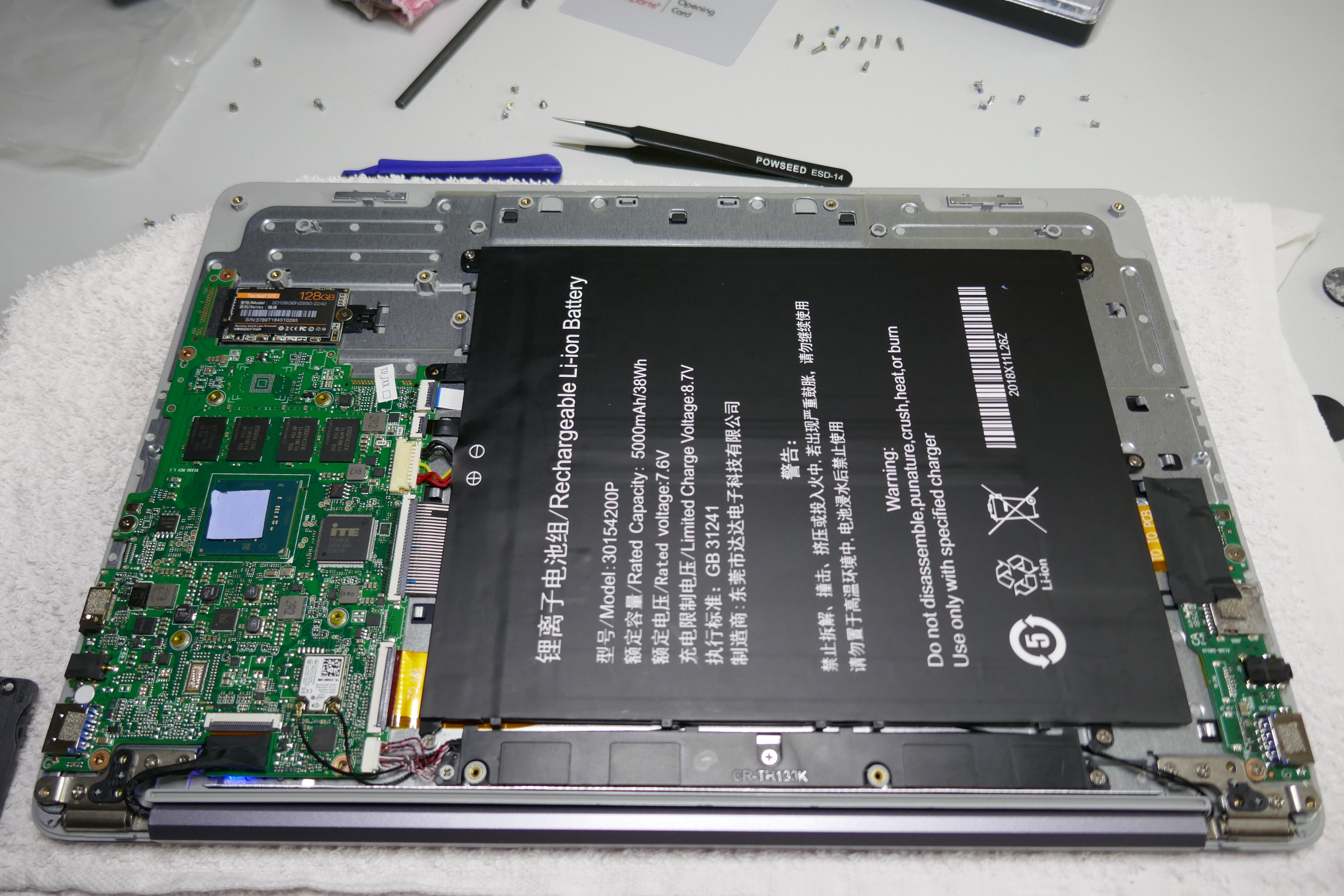 Nachdem ich ein Spielkind bin und unbedingt im BIOS an den Einstellungen herumspielen musste, war ich gezwungen die BIOS-Batterie zu entfernen um wieder ein Bild zu erhalten. Also hab ich das Teclast F7 Plus einmal aufgeschraubt und gleich noch daran gedacht ein paar Bilder zu machen. Wie das Teclast von innen aussieht dürft ihr euch gerne hier ansehen.